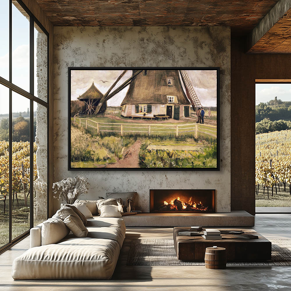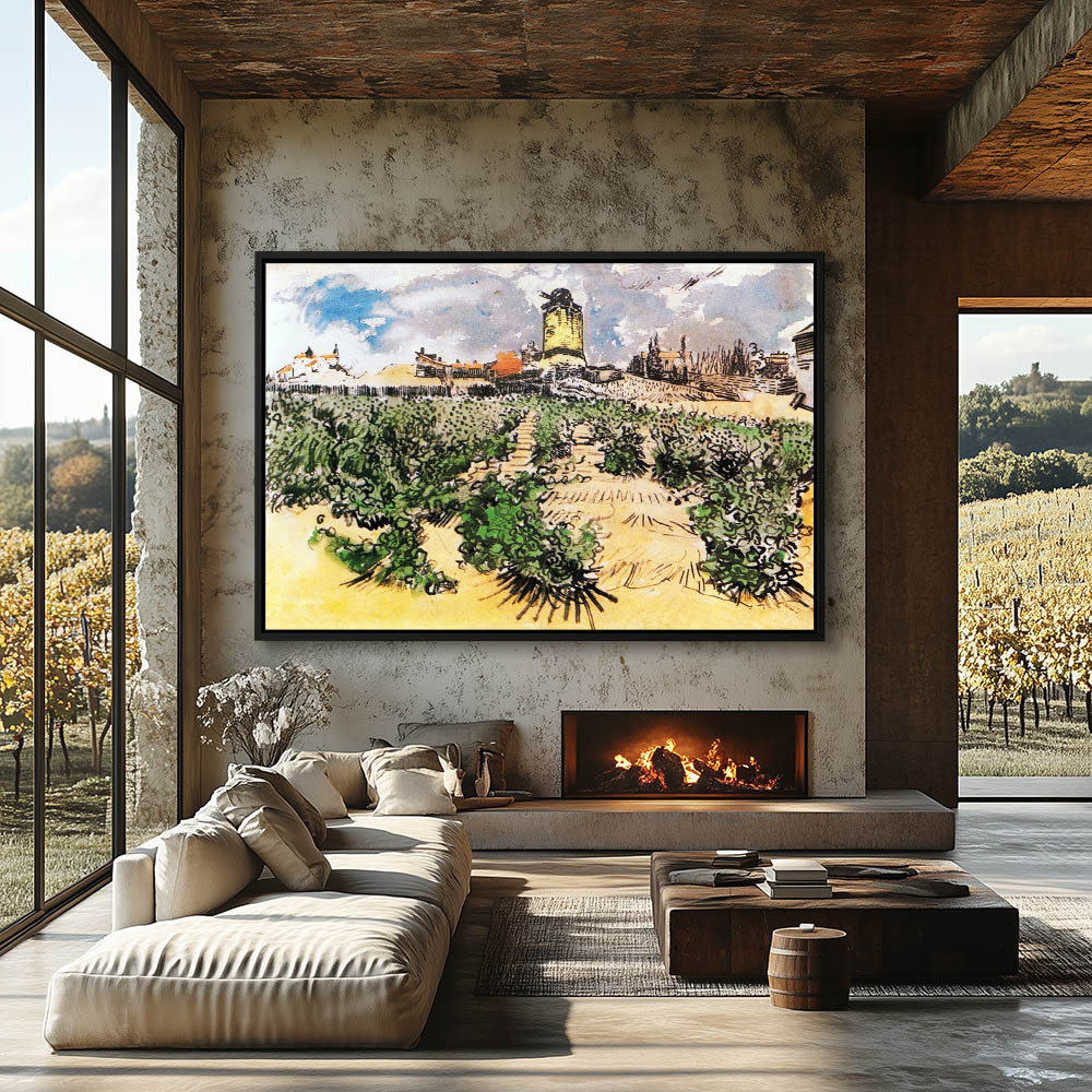 Impressionist Landscape Painting with Farmhouses and Farmland