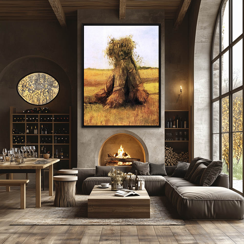 Impressionist Landscape Painting of Wheat Sheaves in a Field