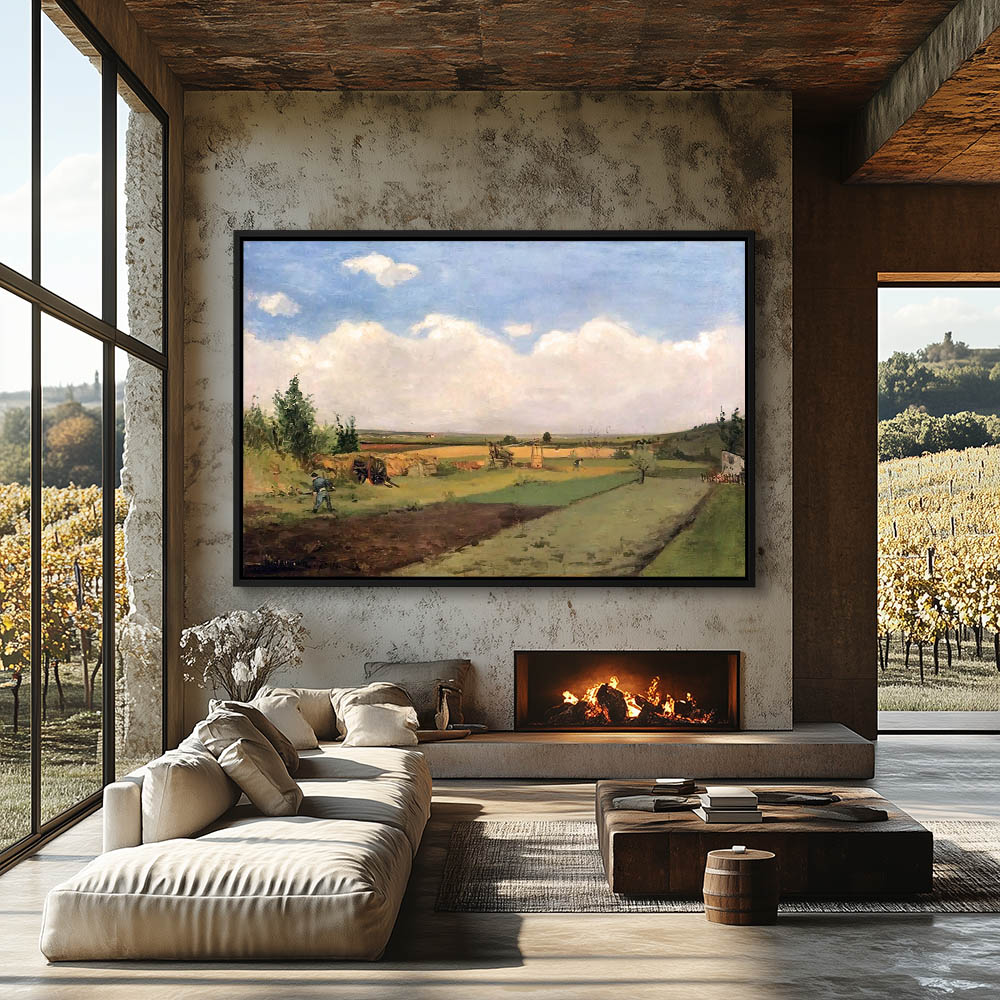Impressionist Landscape Painting of Farmland and Distant Farmhouse