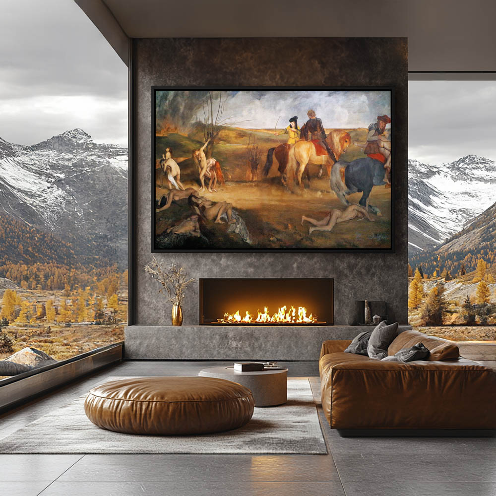 Female nude from behind just out of the bath, drying her hair as a second woman brings a cup of tea
