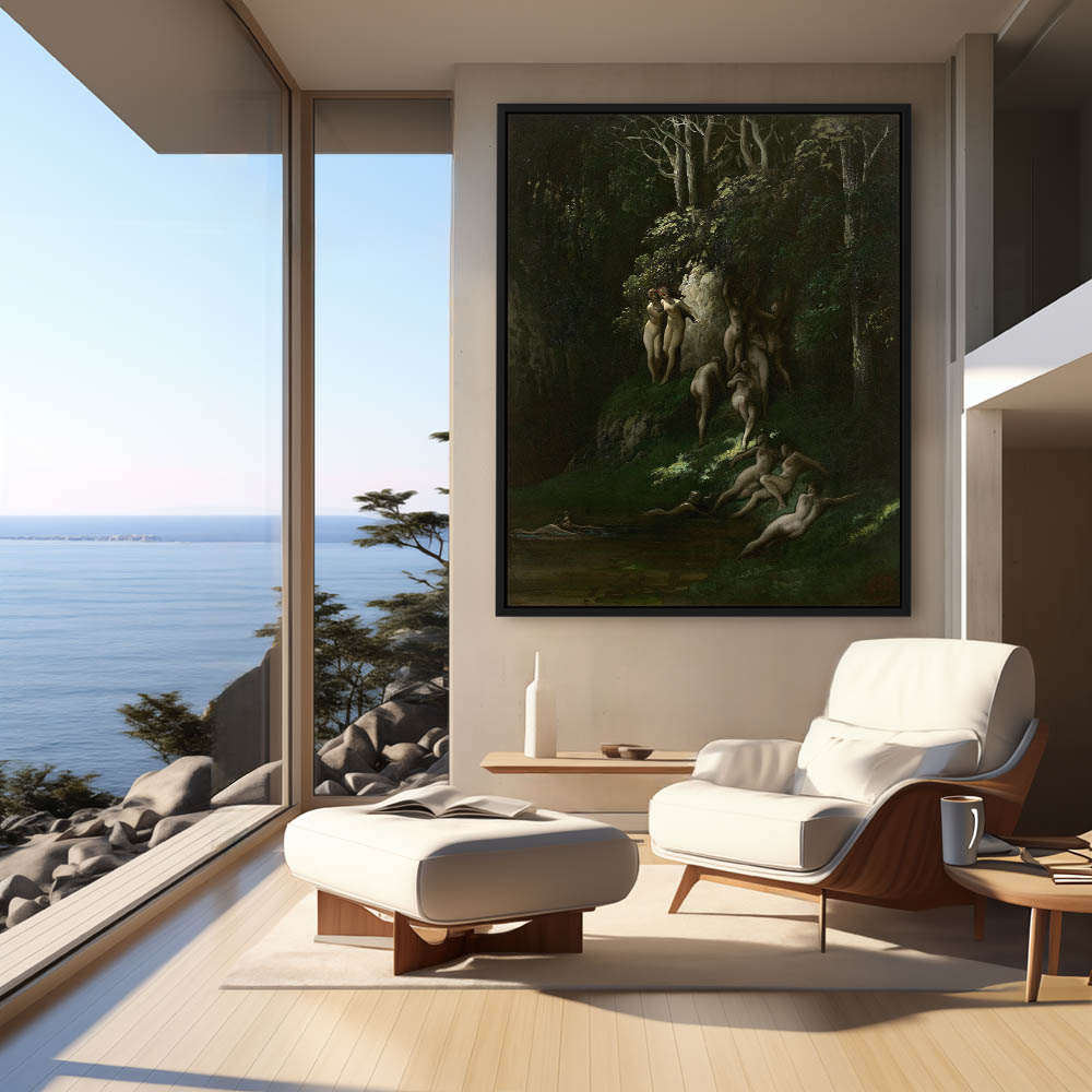 Female nude with a hand mirror sitting on the edge of a quarry pool