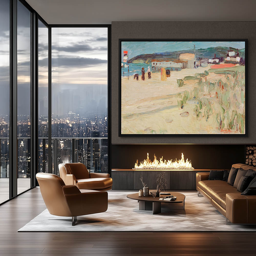 Coastal scene with a beach and fishing houses