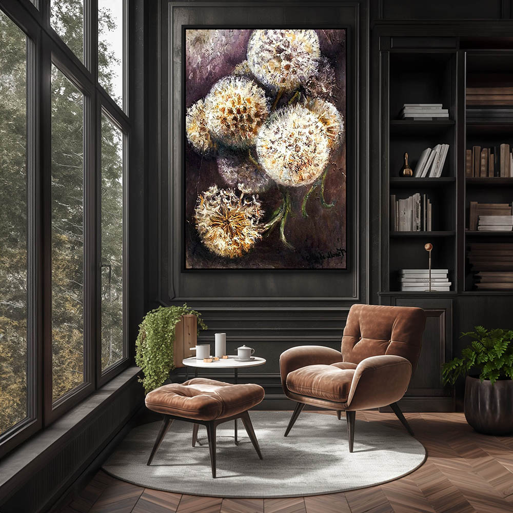 From $29.97Abstract Still Life Painting with Flowers on Blue Background