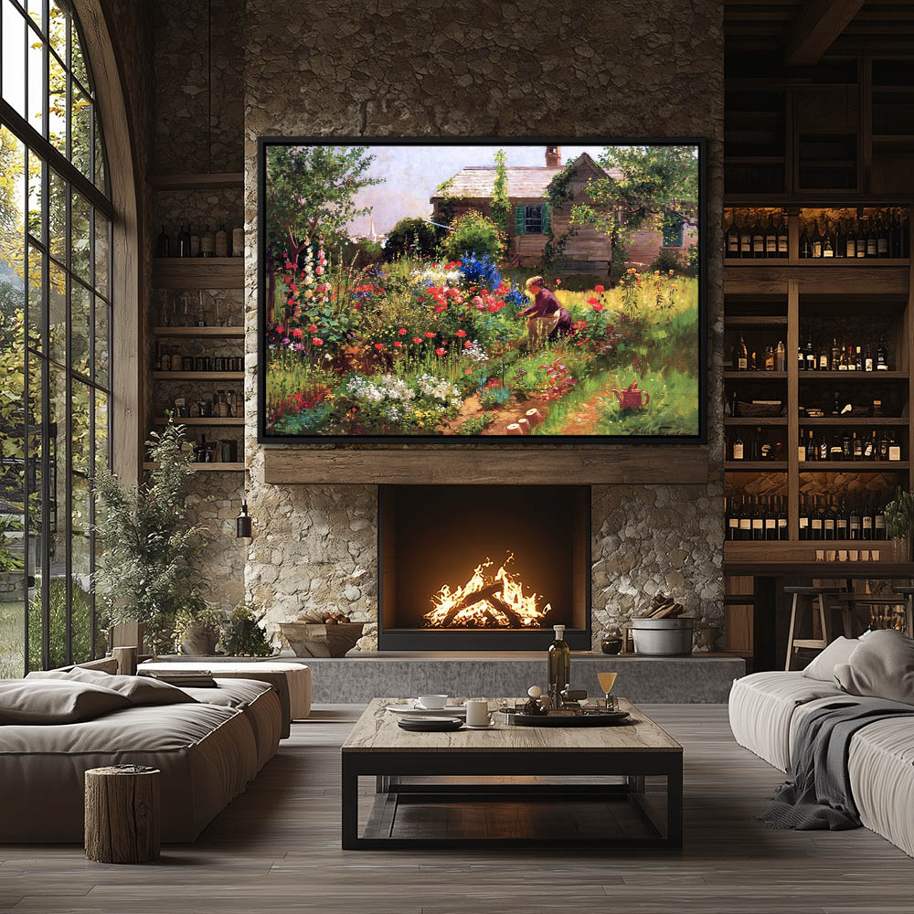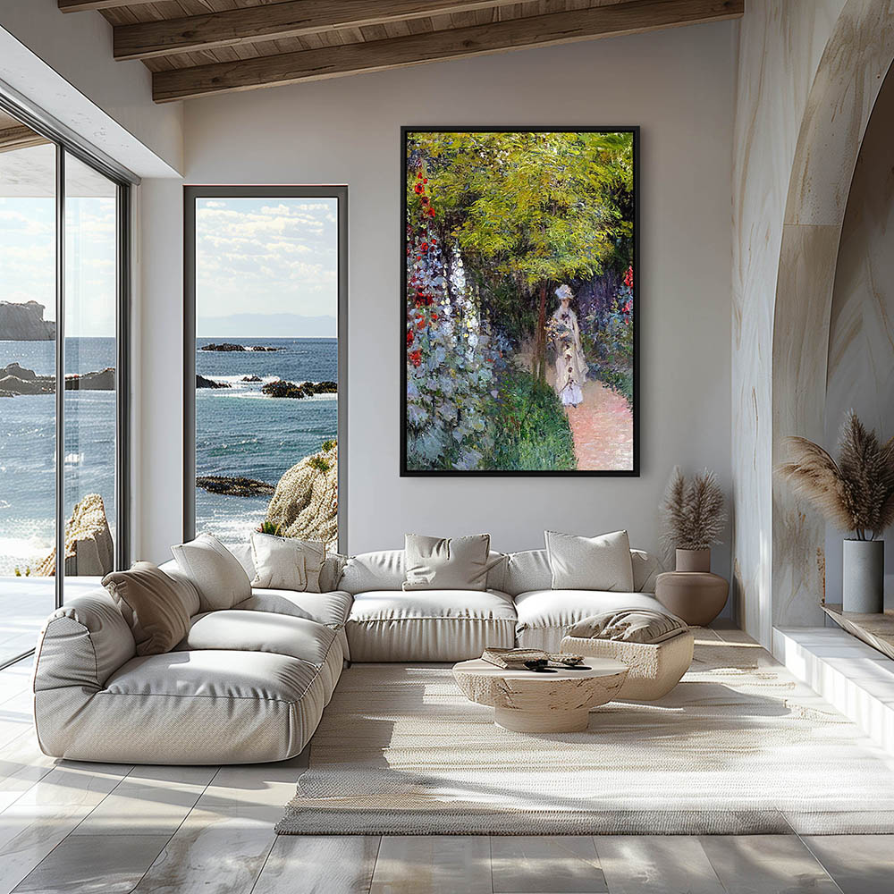 Garden Flower Painting with a Woman in the Garden
