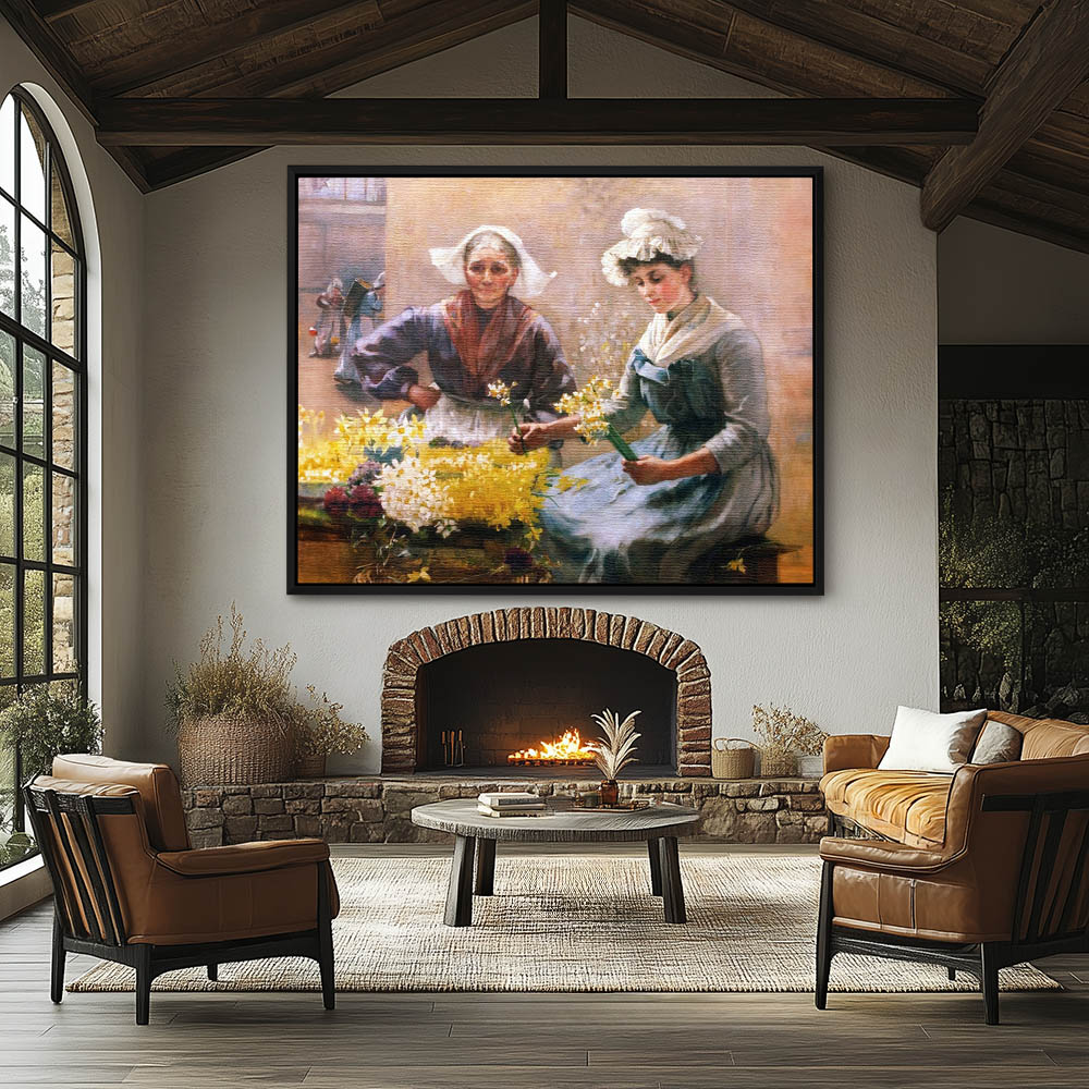 Figurative Painting with Two Females Seperating Flowers