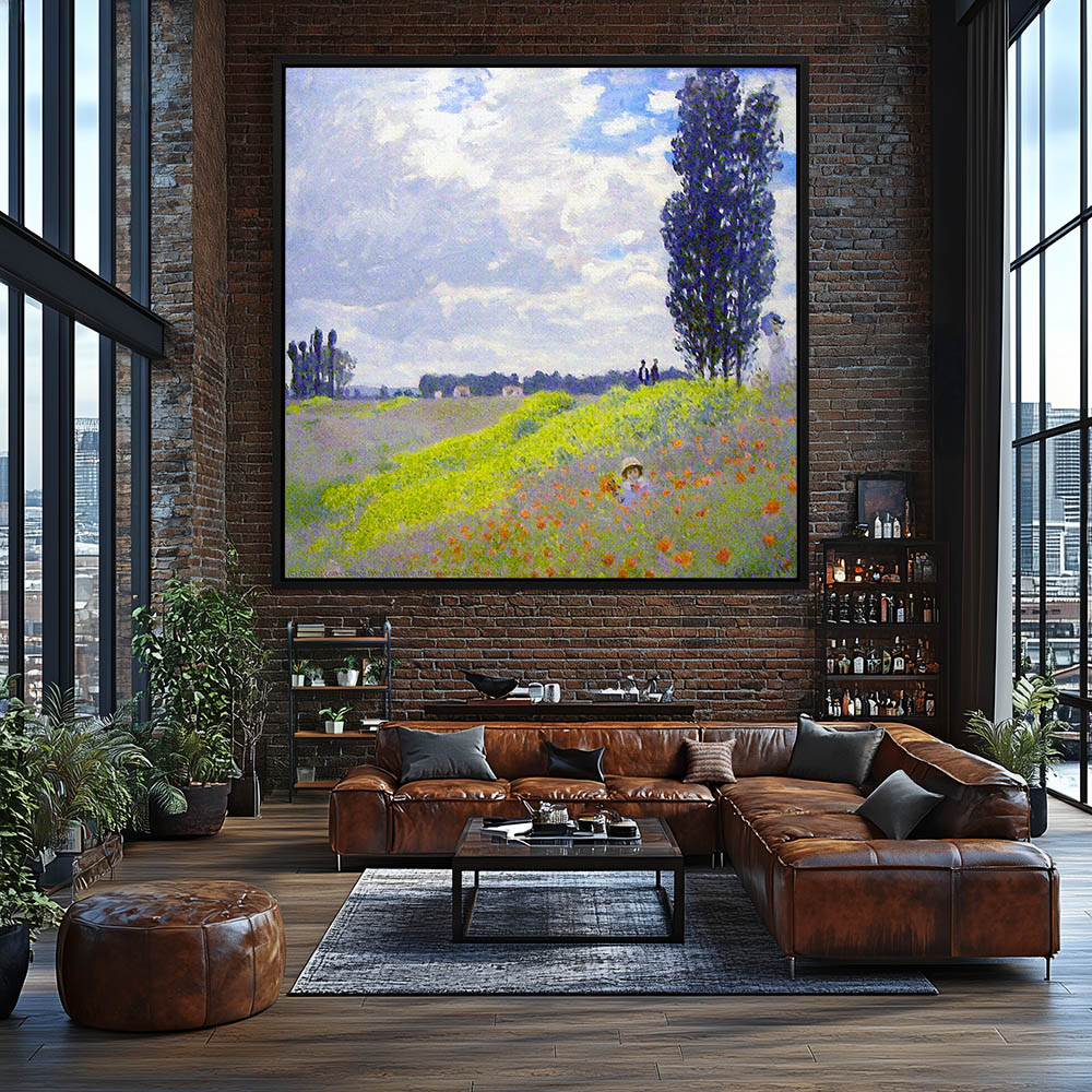 Vintage Landscape Painting with a Child Resting in a Meadow in Bloom