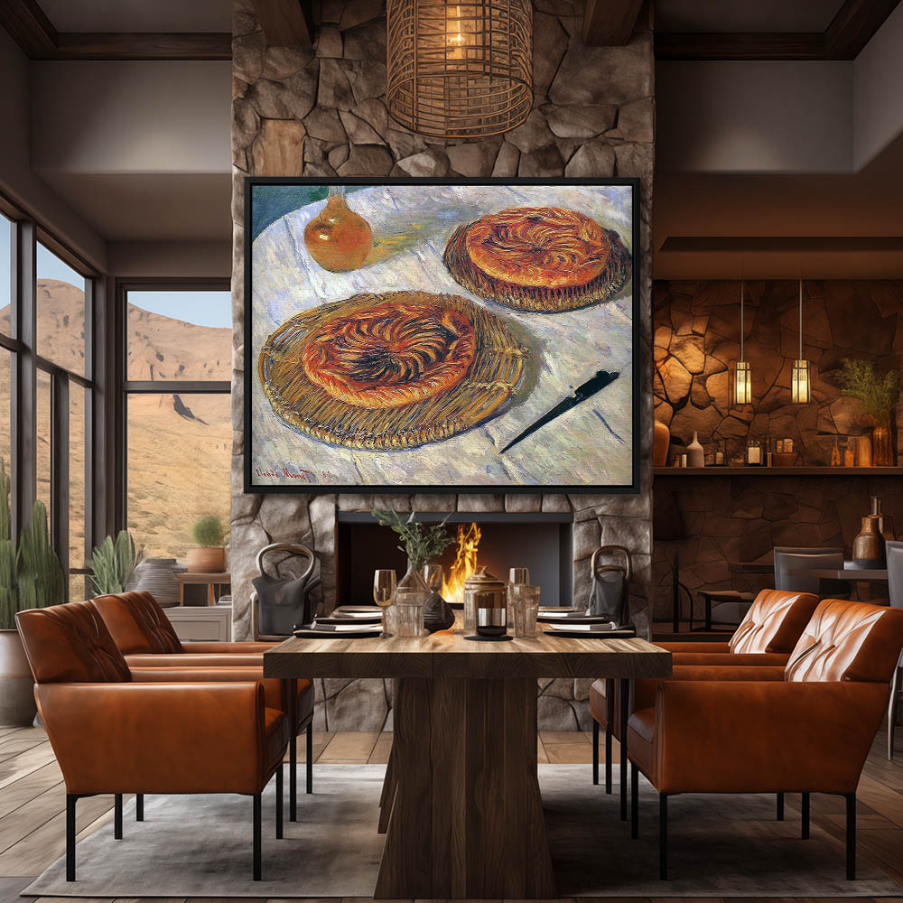 Vintage Still Life Painting with Galettes on a Table with Syrup and a Knife