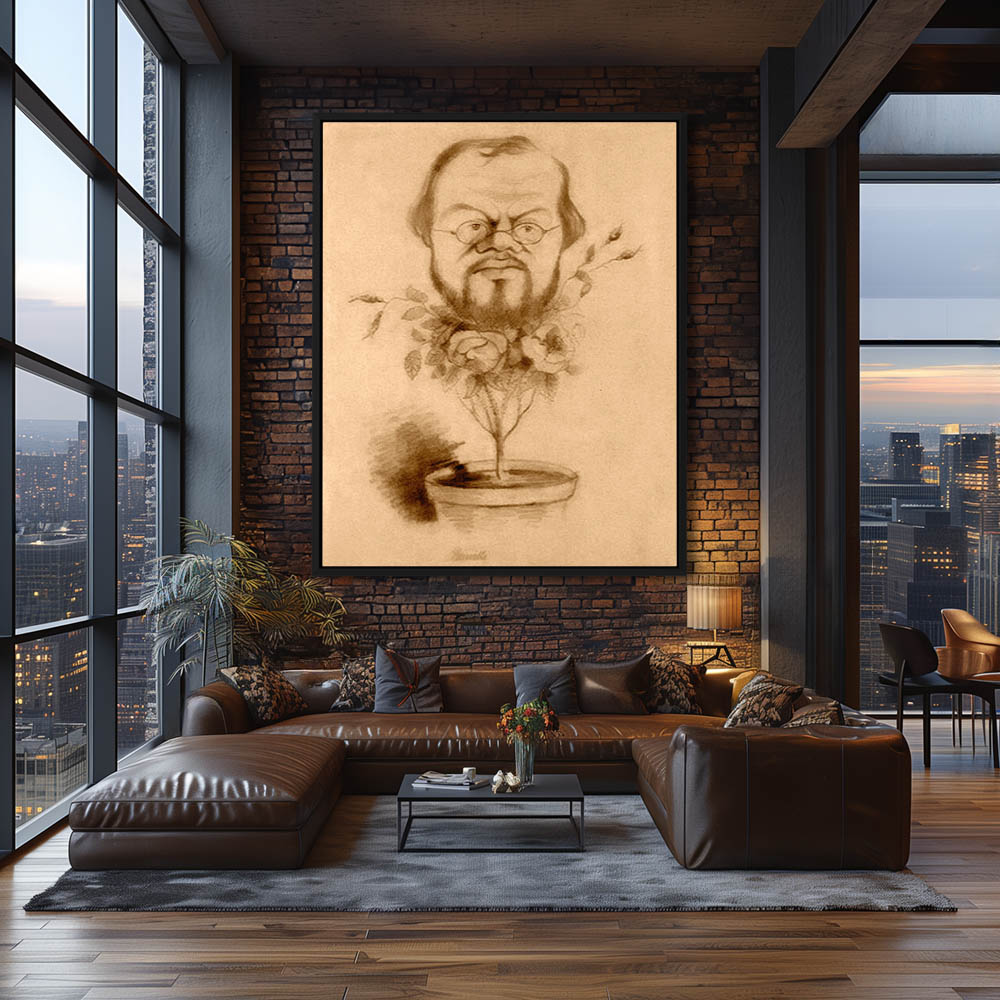 Vintage Pond Painting of Watter Lillies with Flowers and Agapanthus