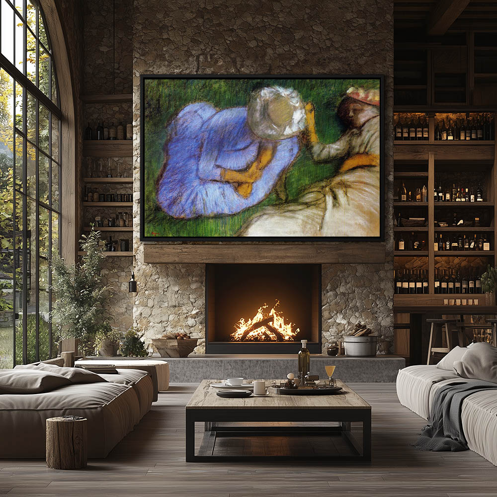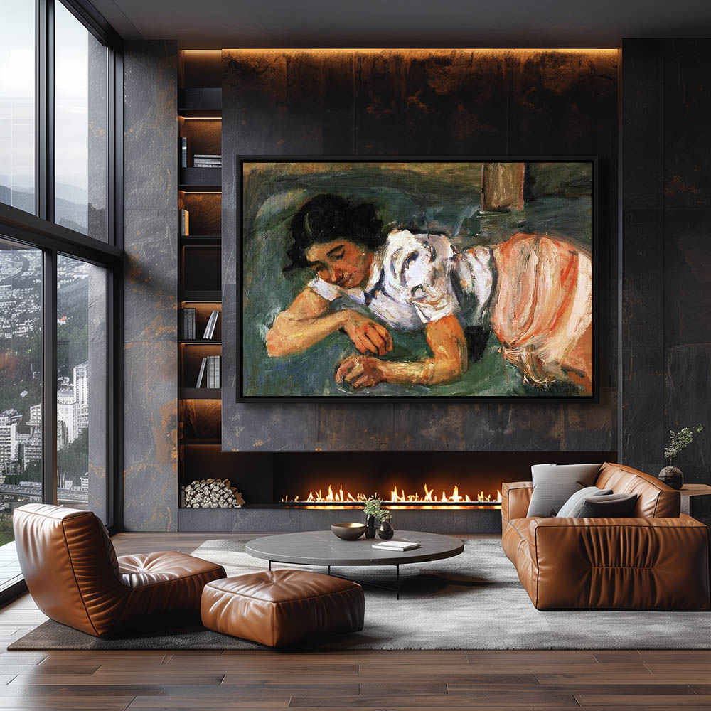 Vintage Landscape Painting with a Young Girl Resting in the Grass