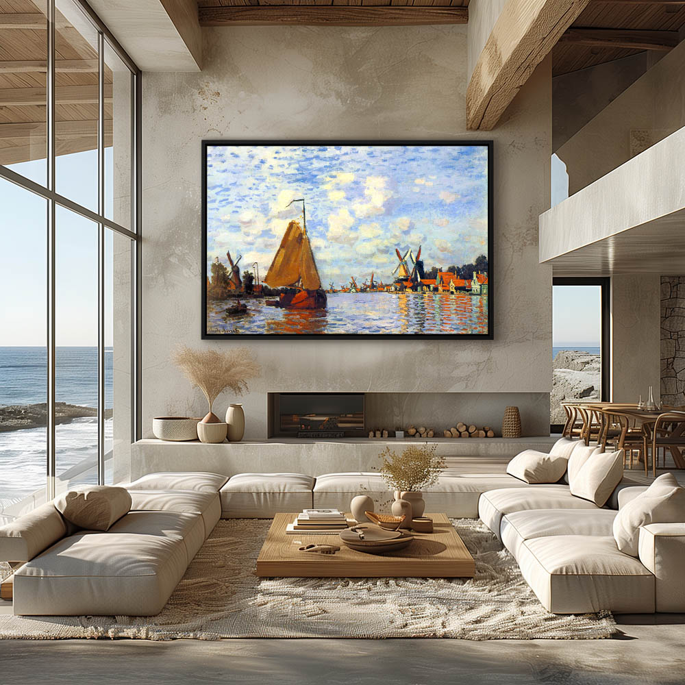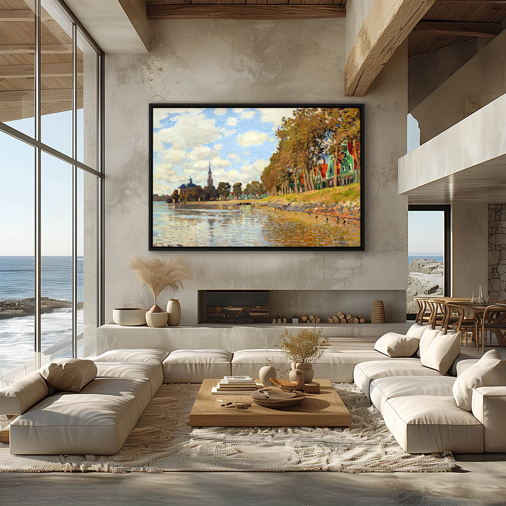 Vintage Painting of a River with Sailboats