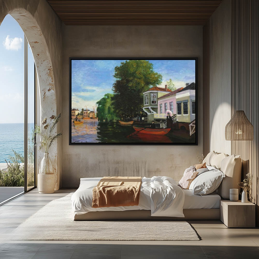 Vintage River Painting with a Boat