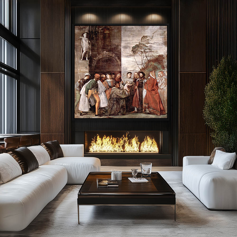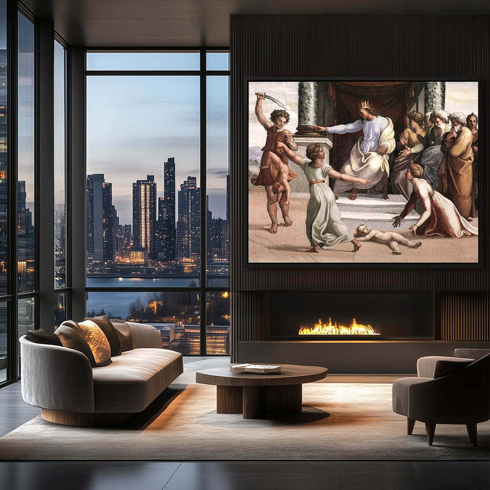 Vintage Religious Painting of Solomon Judging the Two Mothers Child