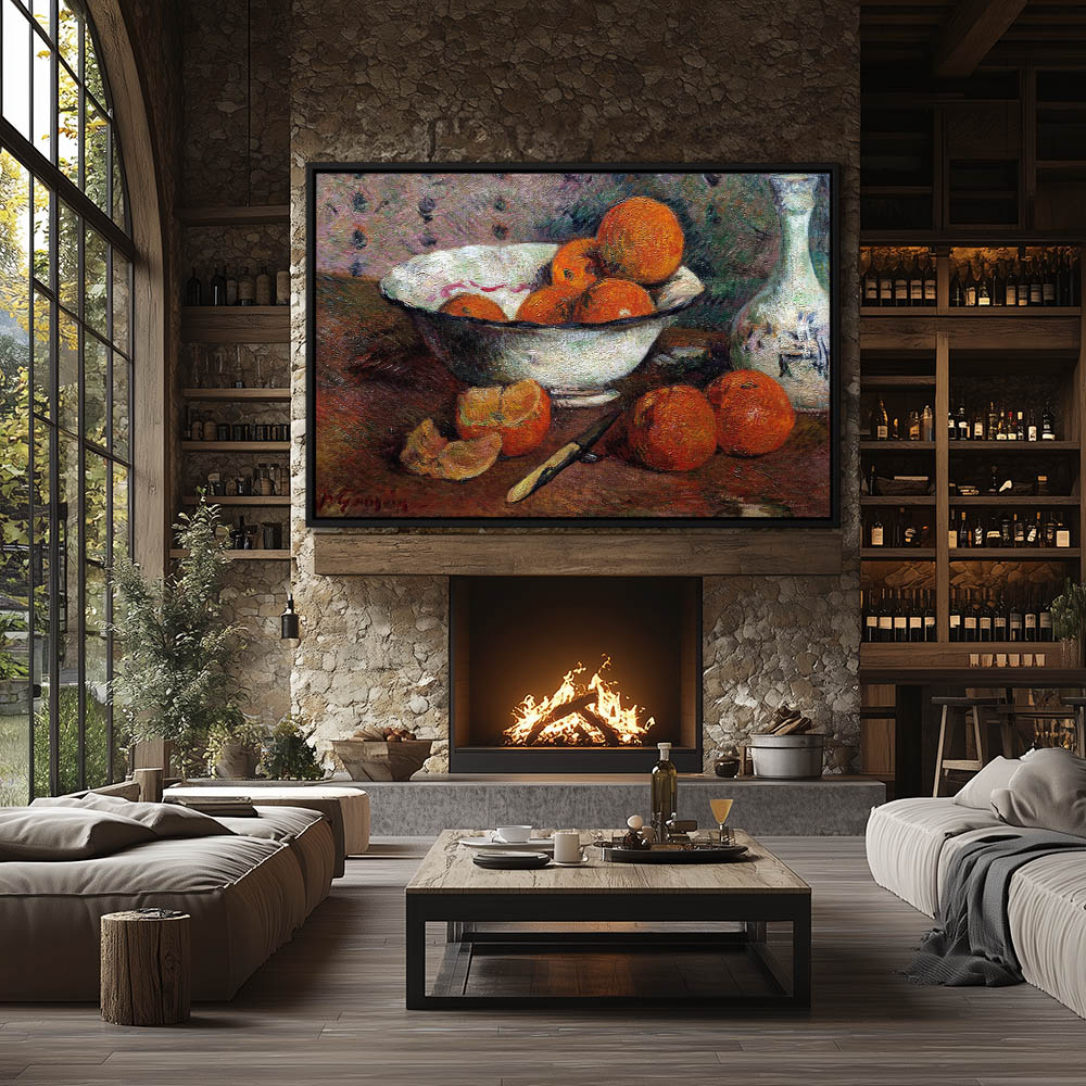 Vintage Still Life Painting with Oranges in a Bowl