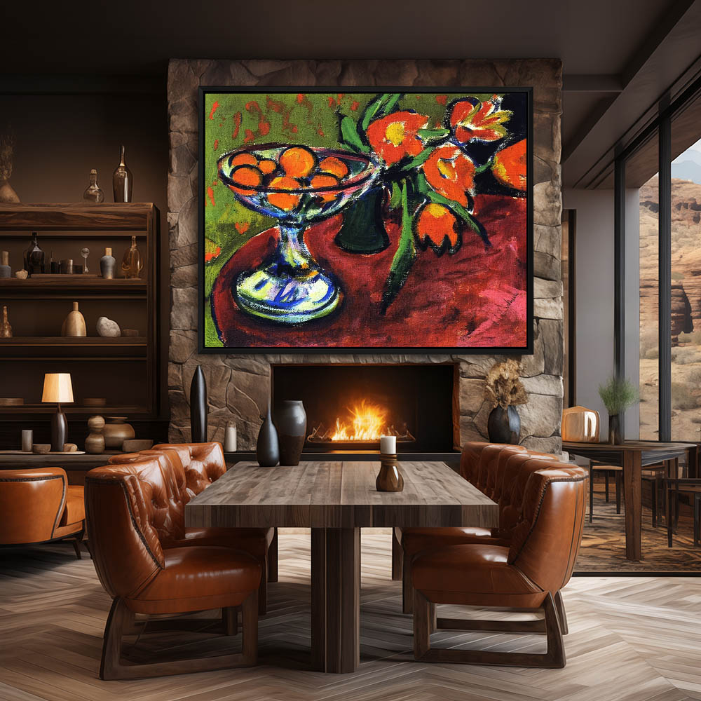 From $31.97Abstract Still Life Painting With Oranges a Tea Cuo and Flowers in Pot