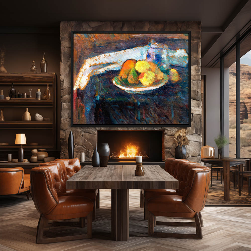 Abstract Still Life Painting with Fruit on a Table