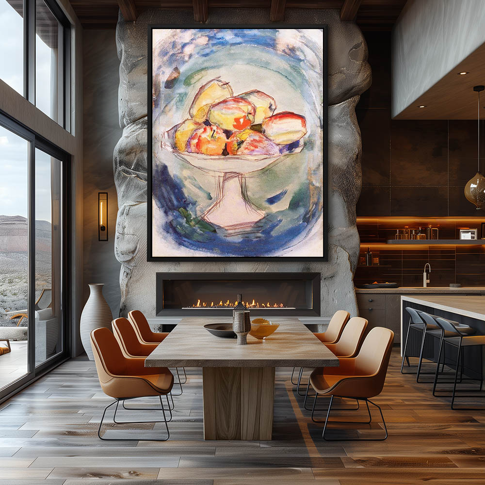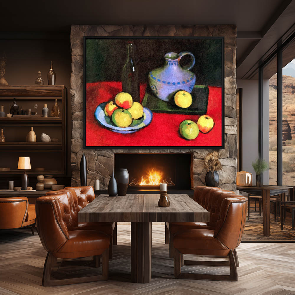 Abstract Still Life Painting with Bowl of Apples on a Table in Multi Colores