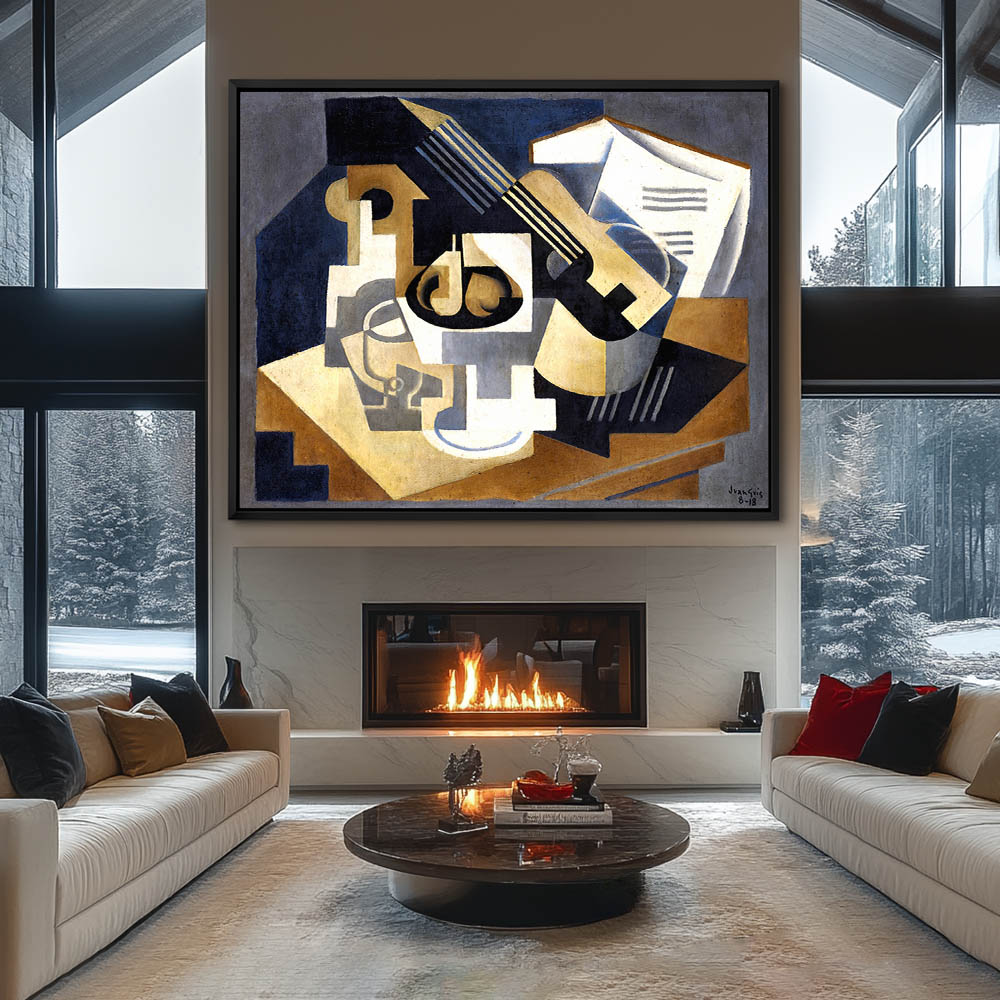Still life with a cup and saucer, tangerine and matches on a table to the side of a window