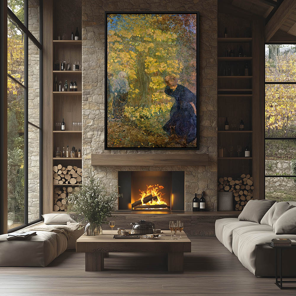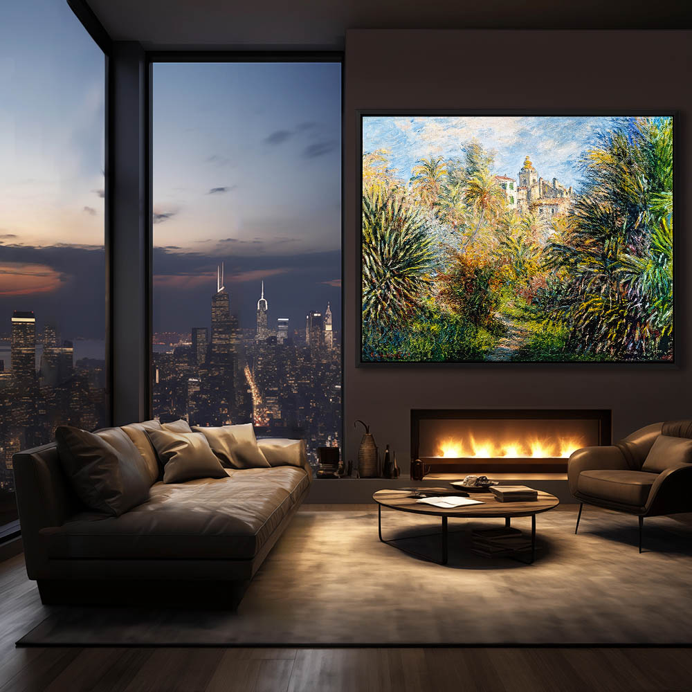 Vintage Landscape Painting with a Cityscape View from the Garden