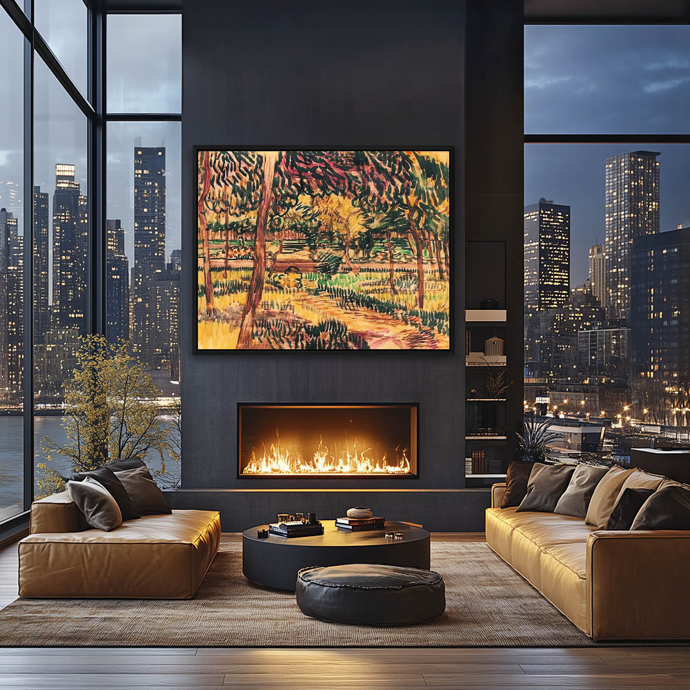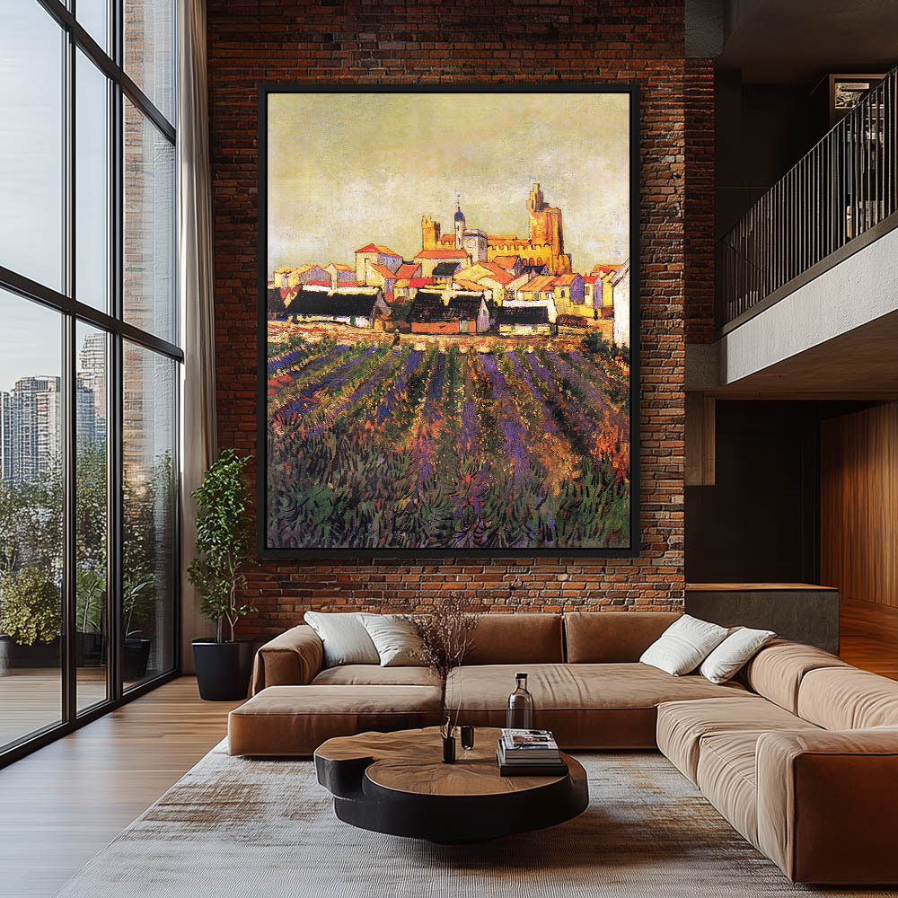 Impressionist Landscape Painting of a City Silhouette with Garden on the Outskirts