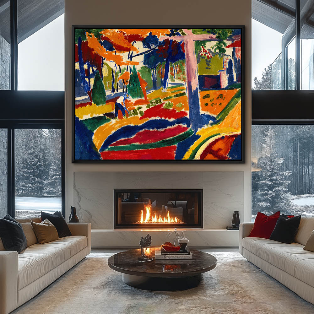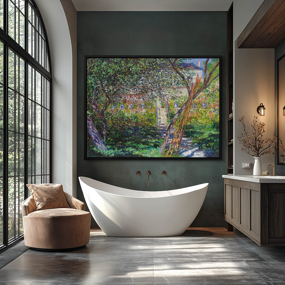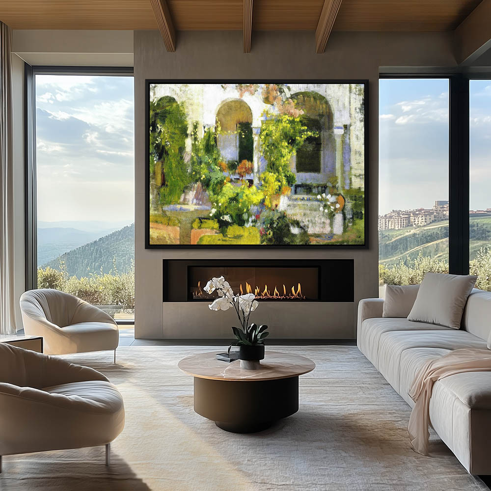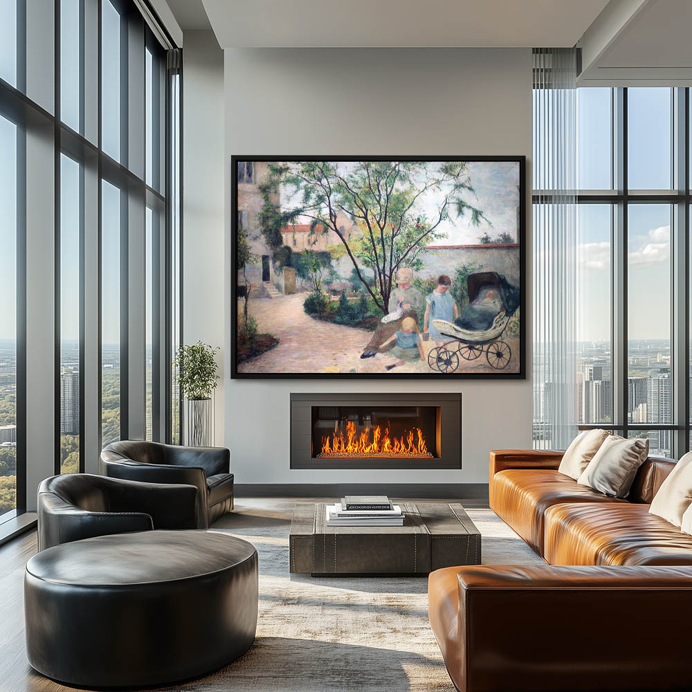 Vintage Garden Landscape Painting with Figures Relaxing in the Garden