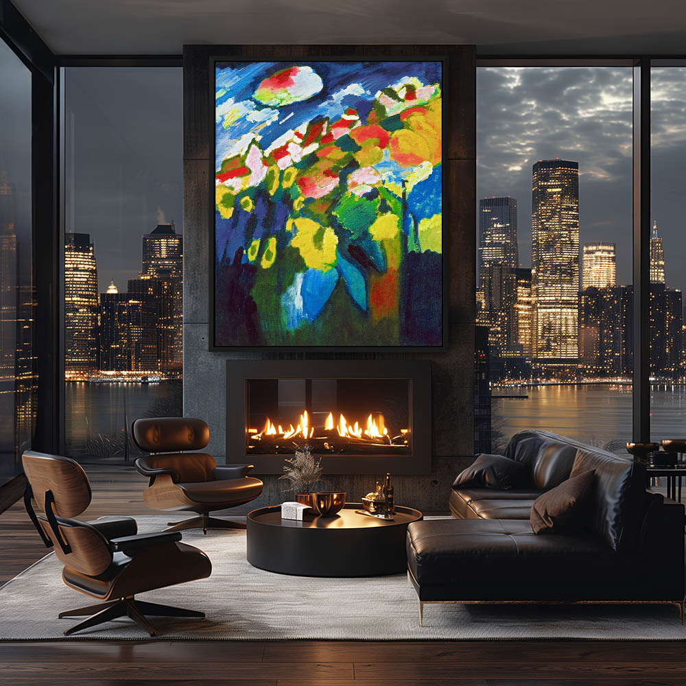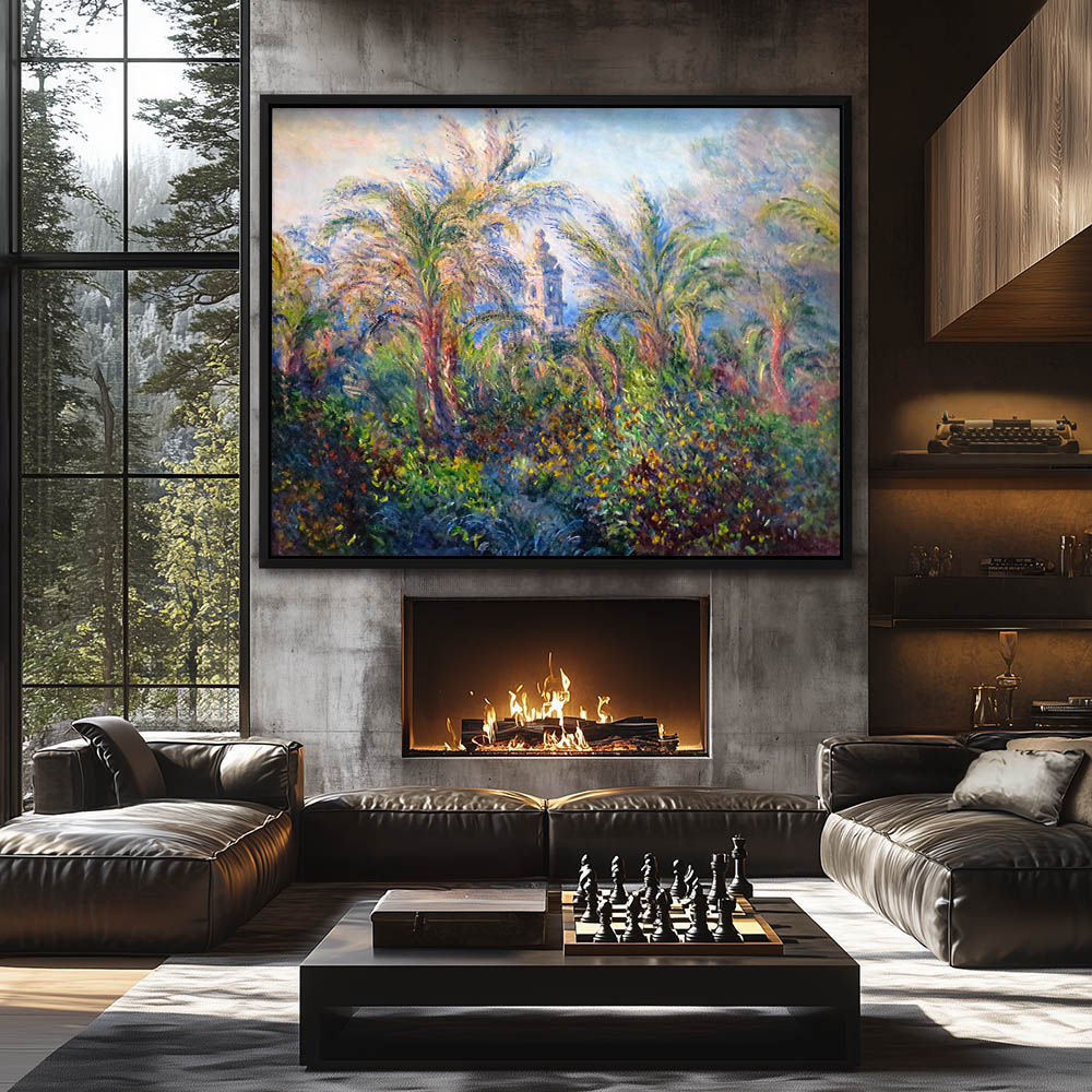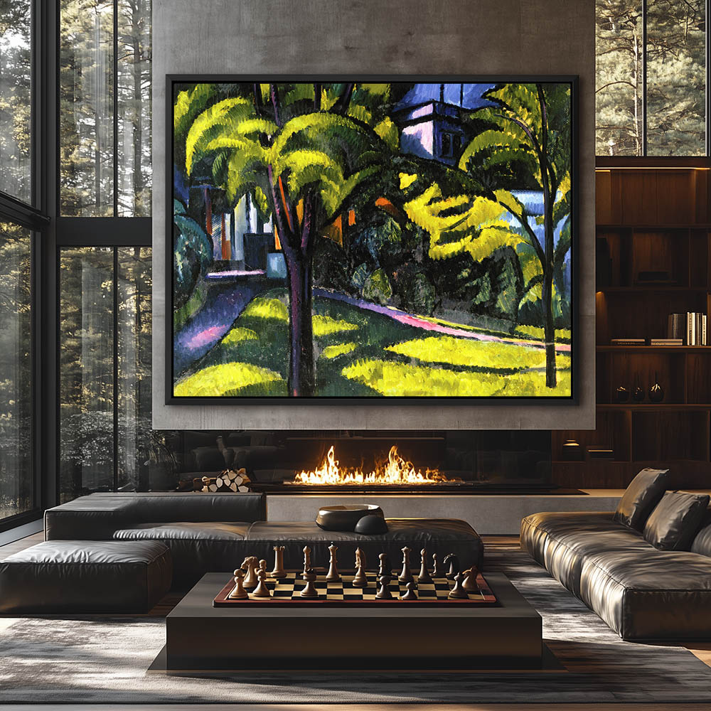 Vintage Landscape Painting with Palm Trees in the Morning from the Garden
