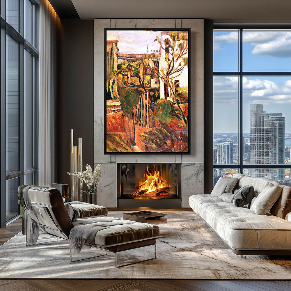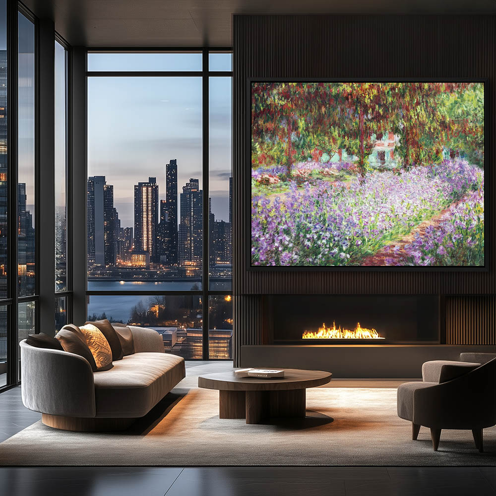 Vintage Garden Landscape Painting with Flowers in Giverny