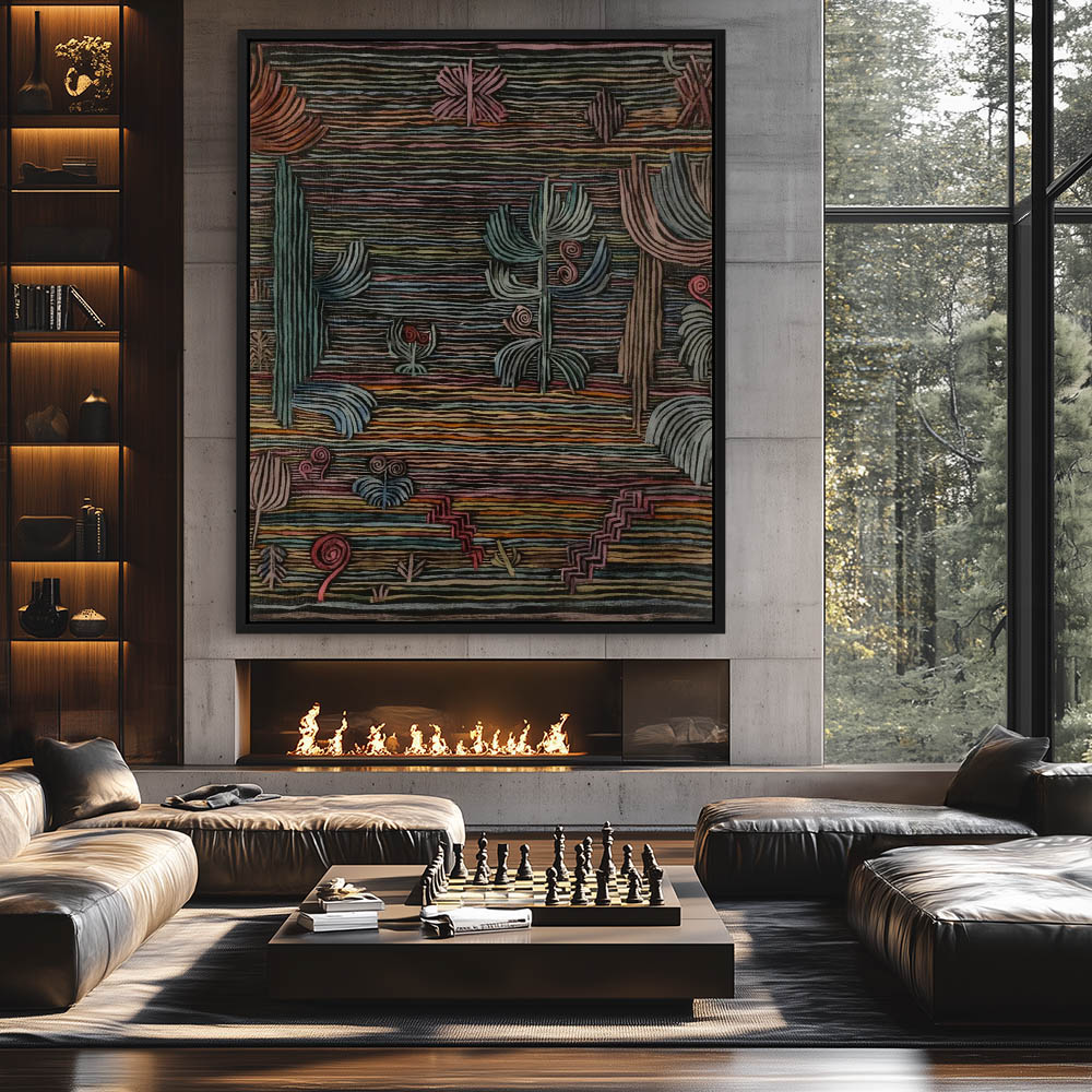 Abstract garden depicted with lines of colors on a black background