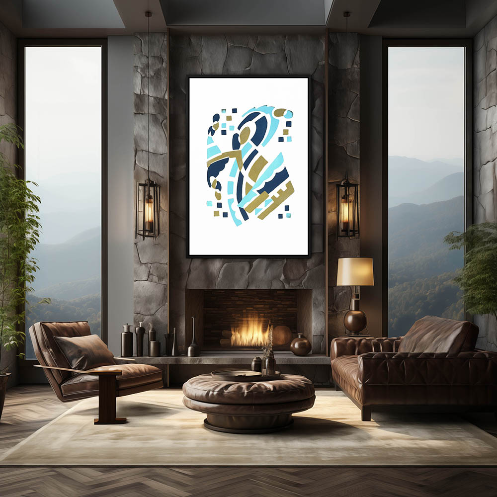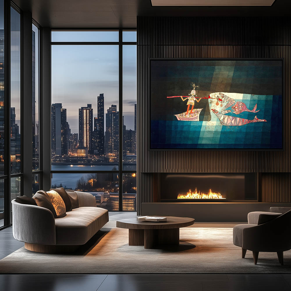 From $29.97Geometric abstract battle with sea monsters on a blue gradient background