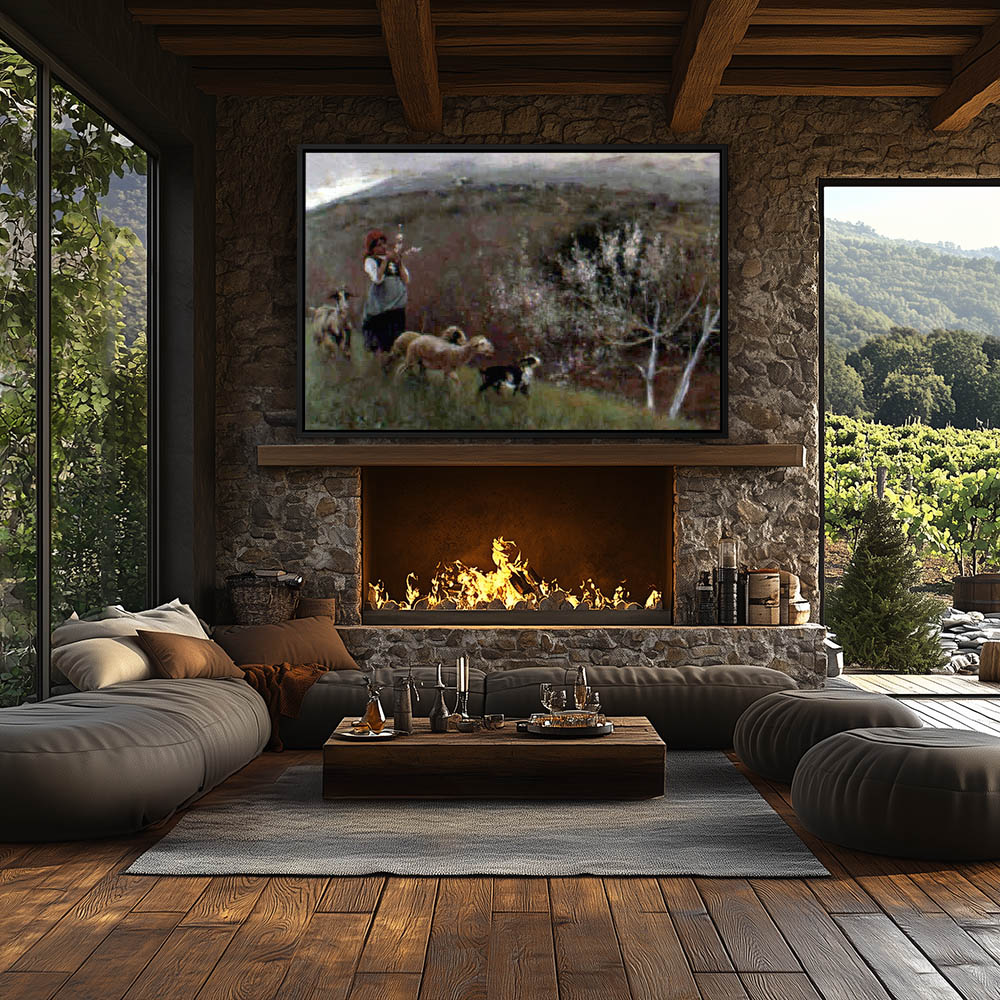 Landscape Painting of a Shepherdress with a Herd of Goats