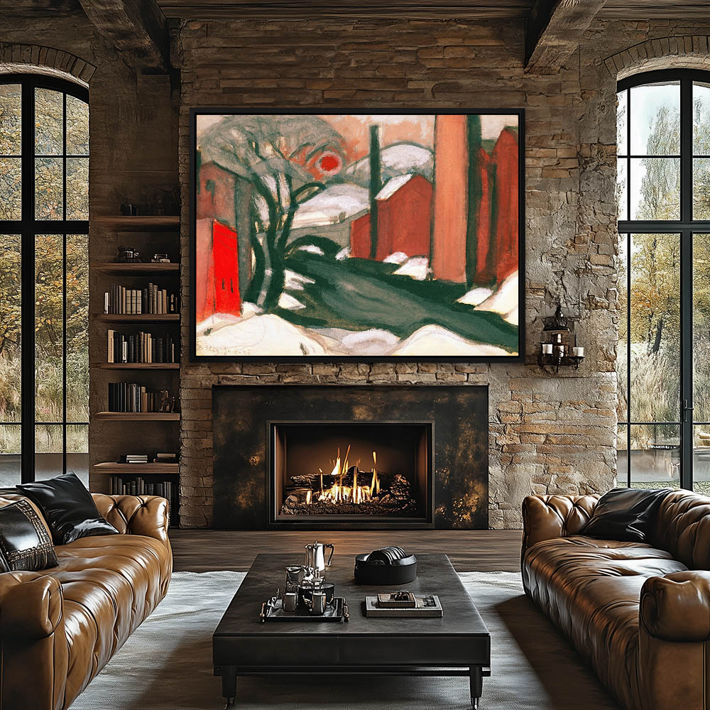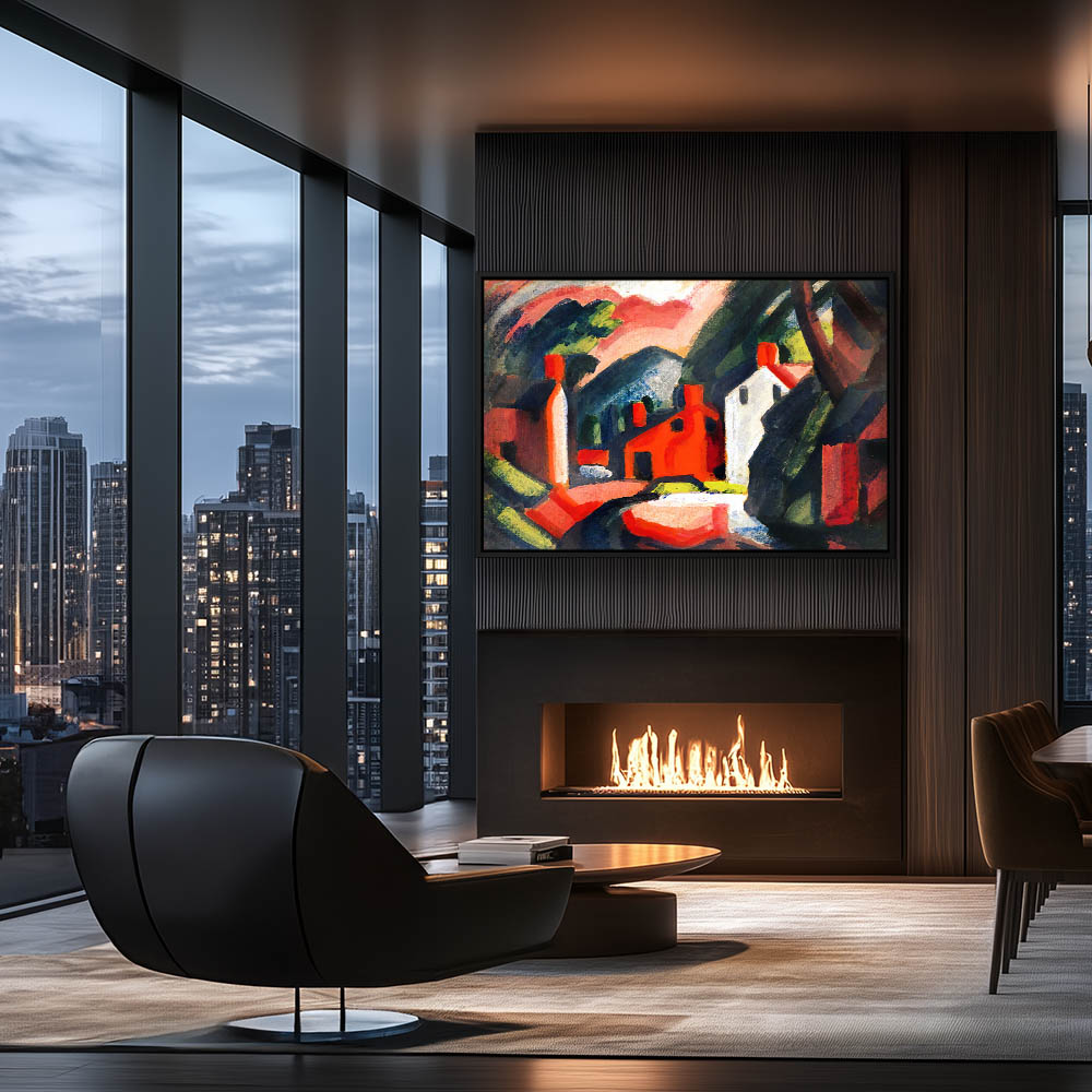 Abstract Landscape Painting with Creek and Bridge and Structures