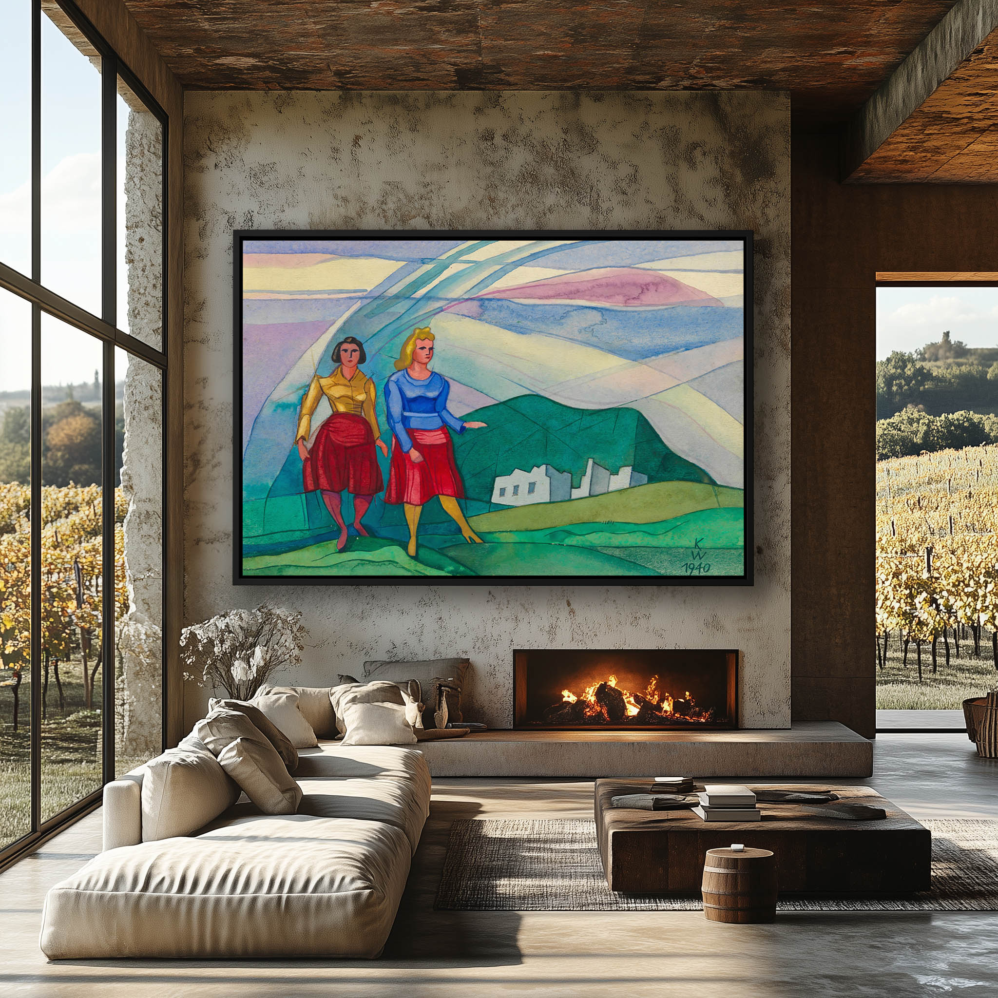 Abstract landscape with two women