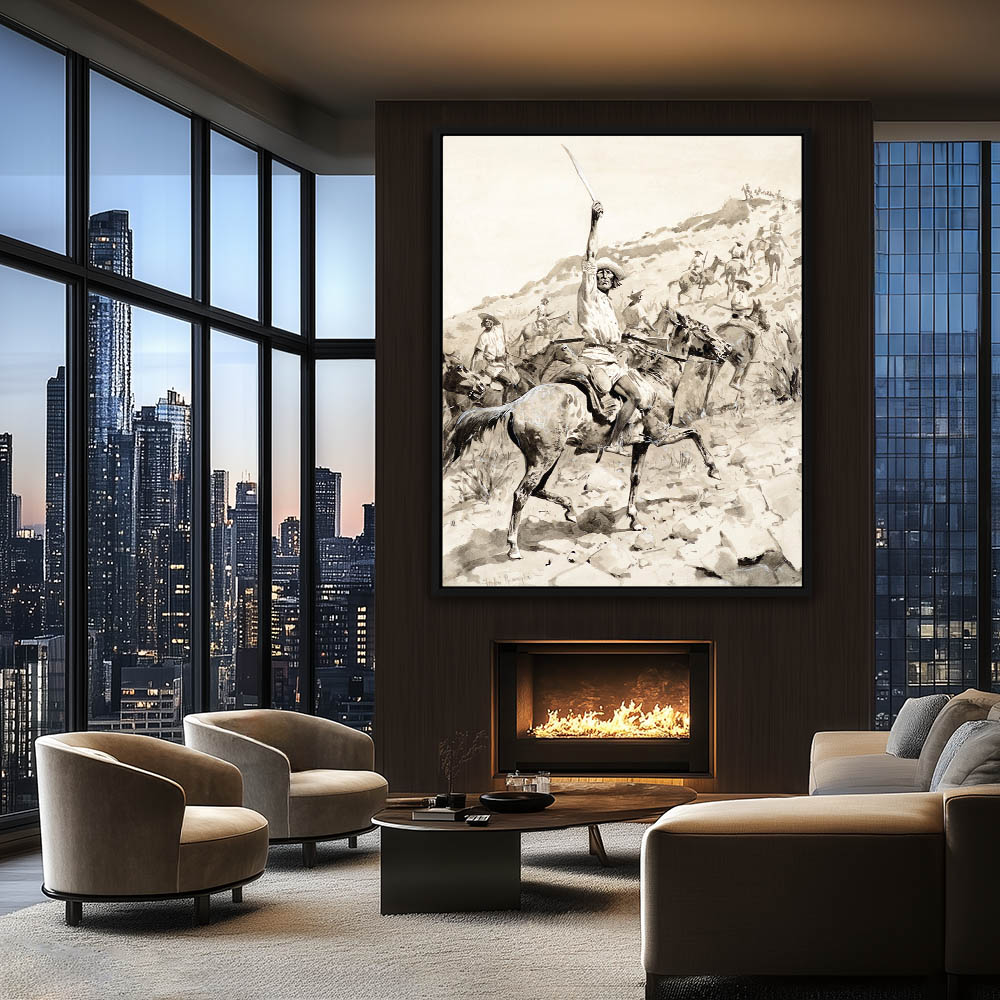 Indians on horseback, one with a raised sword