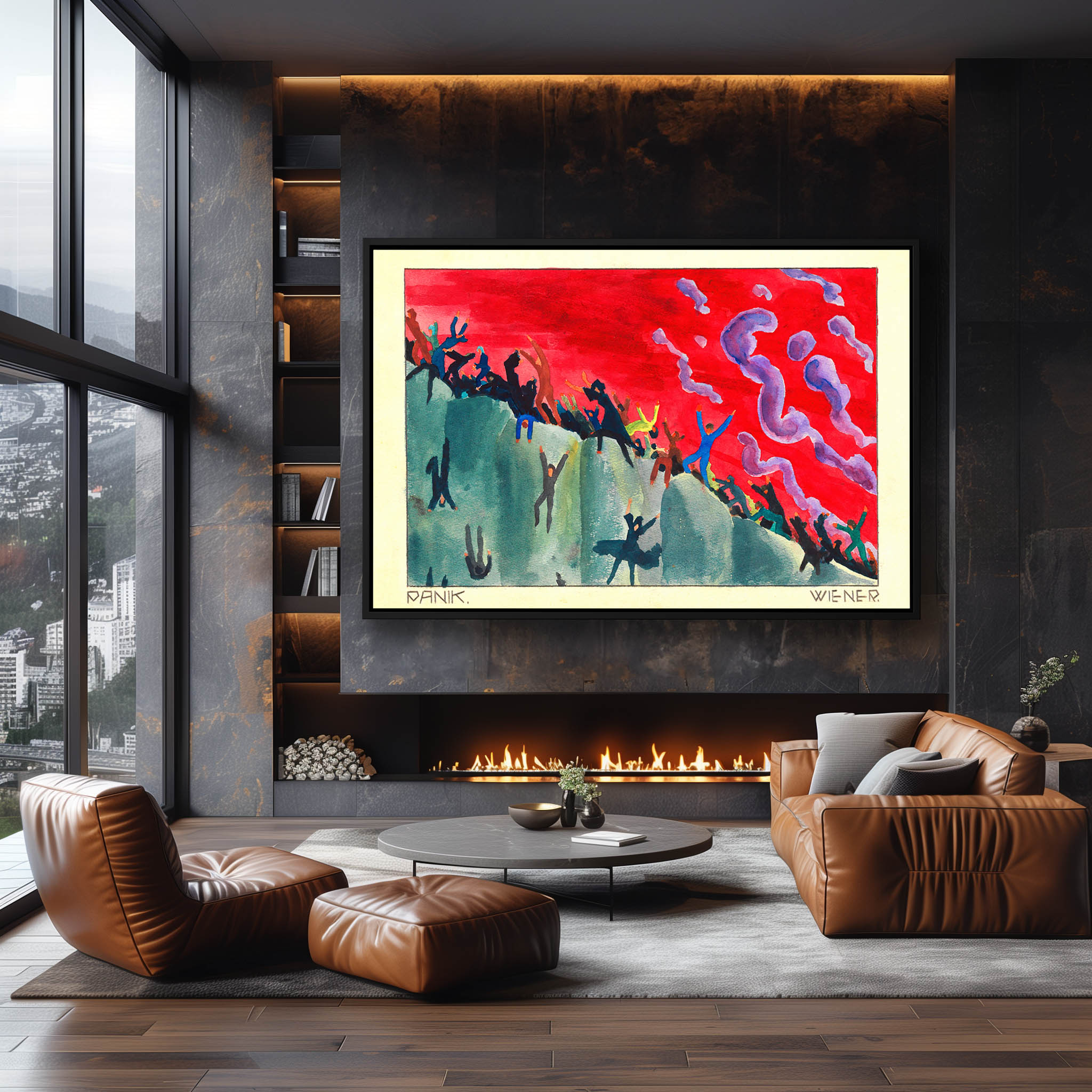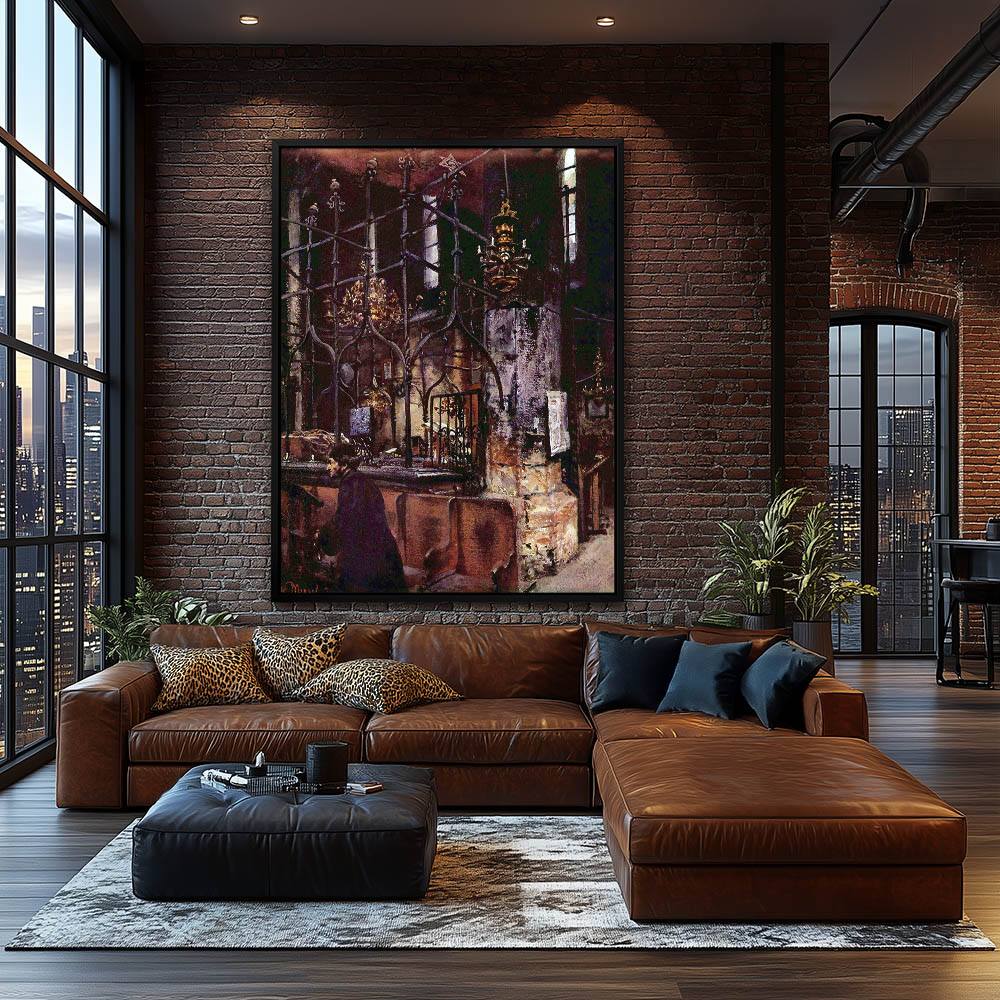 Vintage Painting of an Interior of the Old Synagogue in Prague