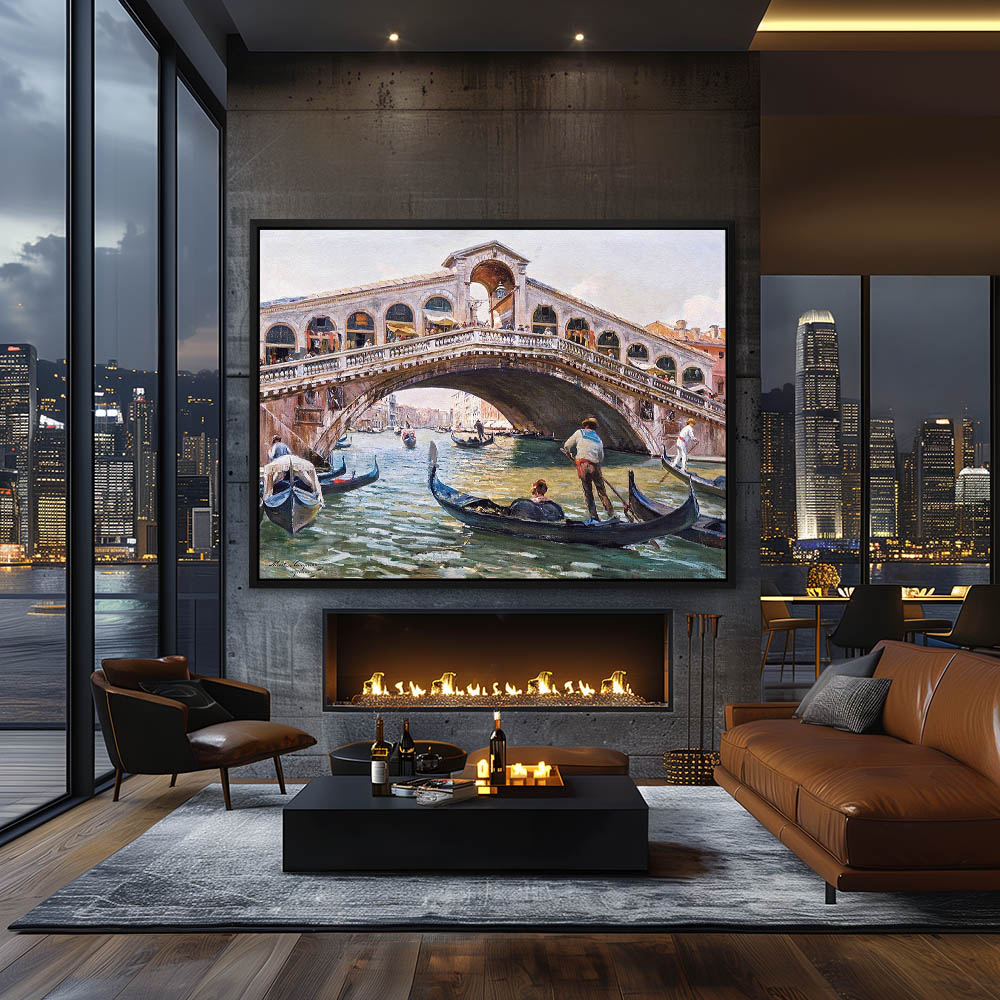 Vinece Canal Painting with Figures in Gondolas