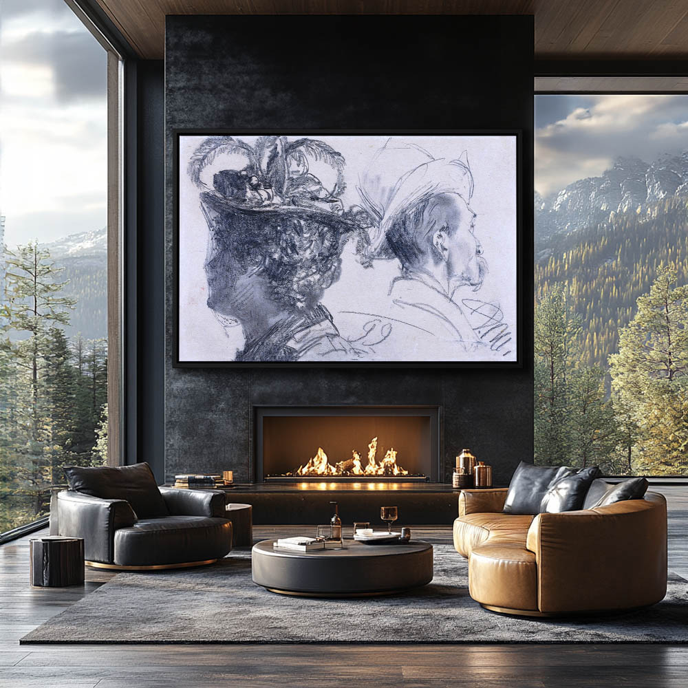 Vintage Figurative Drawing of the Heads of a Man and Woman