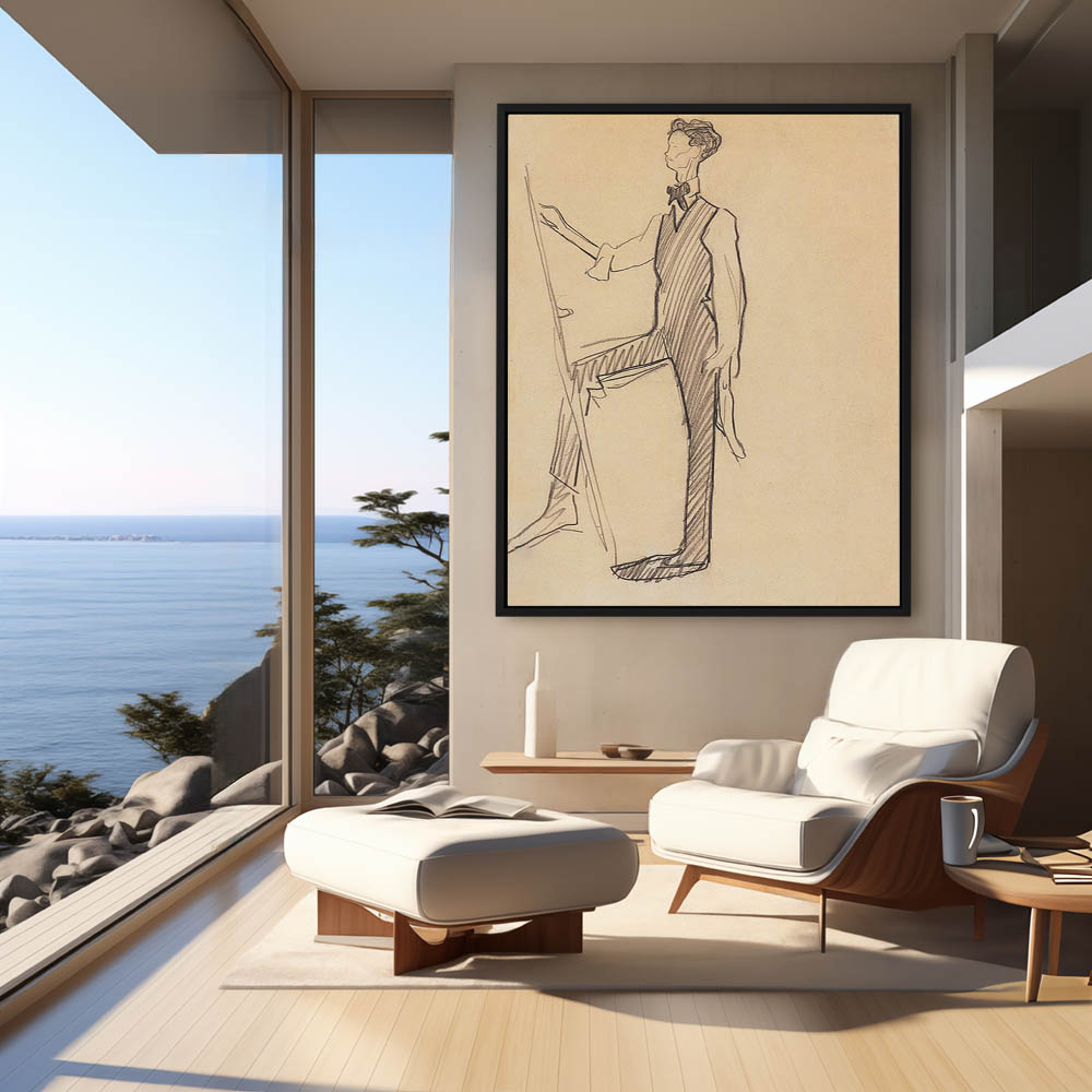 Abstract sketch of a man standing with his head turned