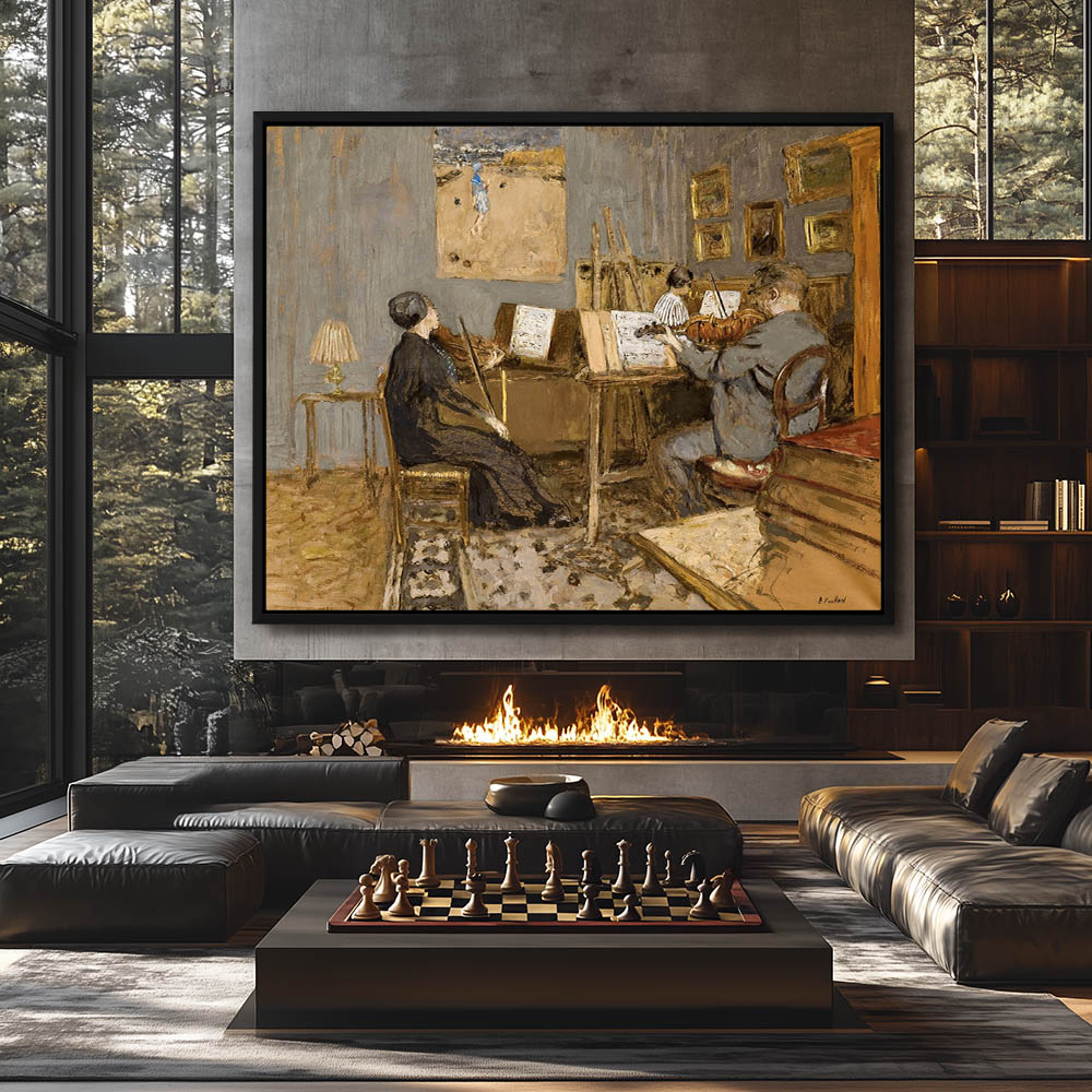 Man and woman playing violins in a studio