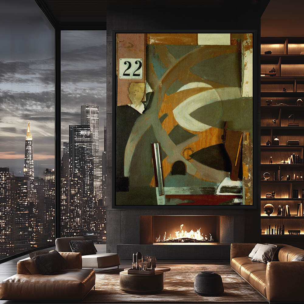 Abstract collage with found objects, paint and wood