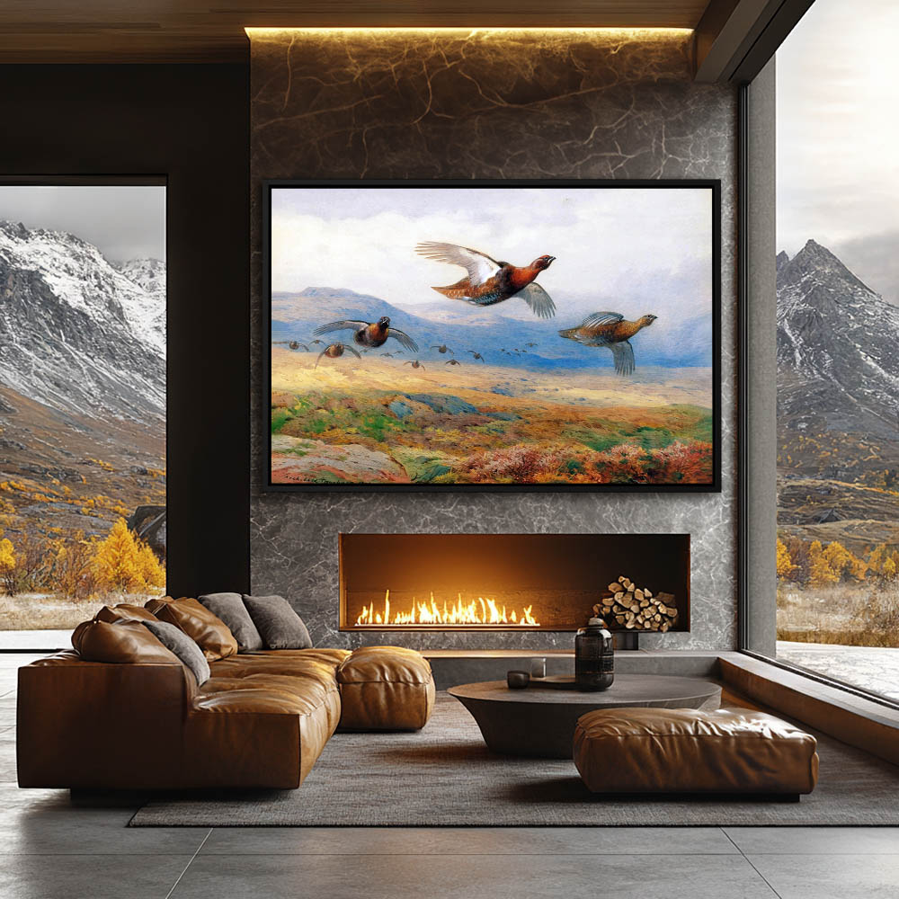 Landscape Painting with a Covey of Grouse in Flight