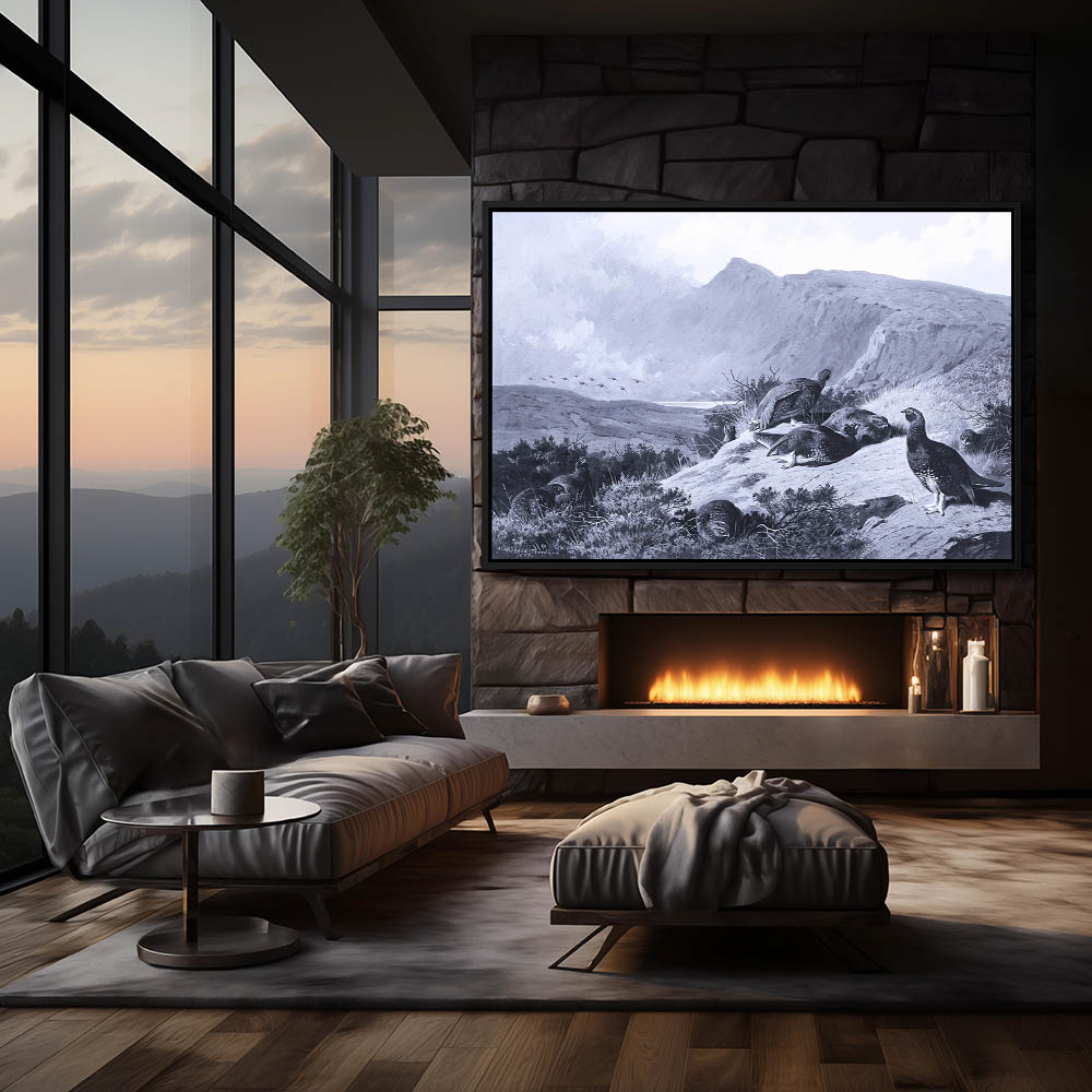 Painting of Grouse Resting in a Open Landscape