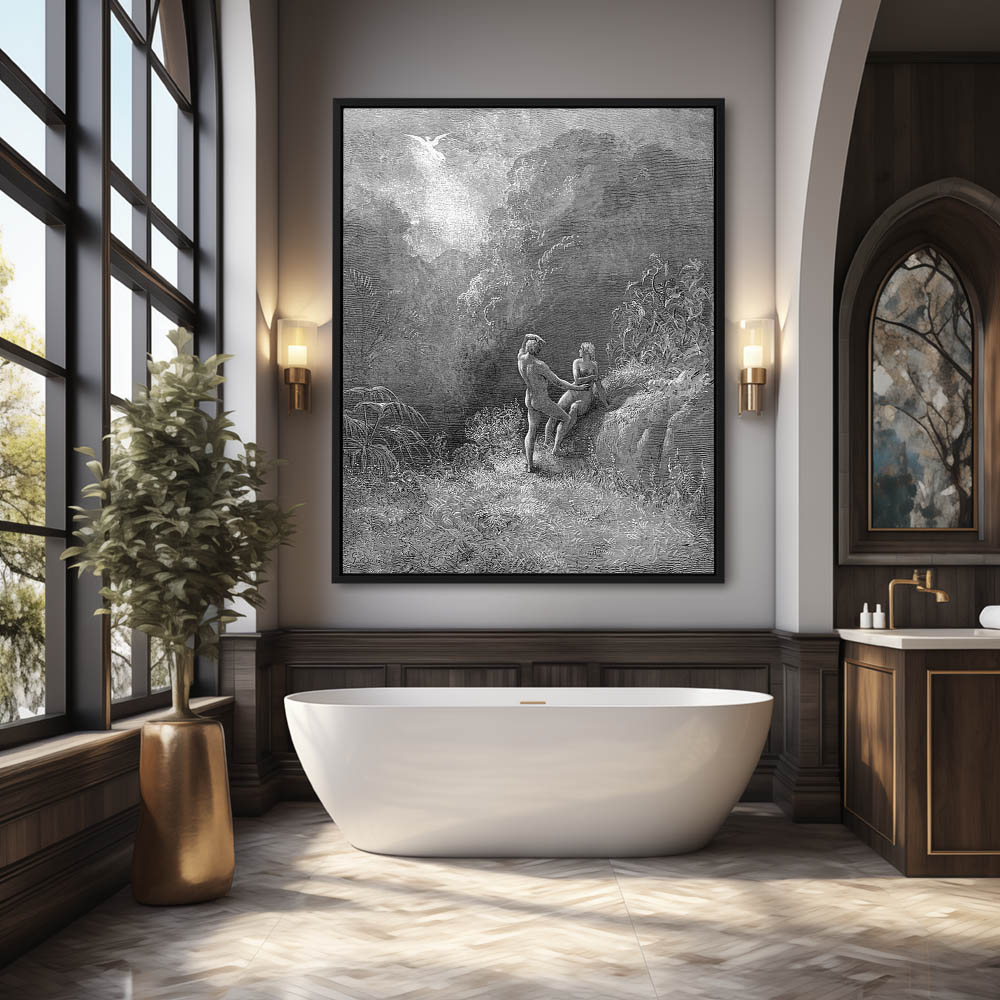 Vintage Etching of The Angel up to heaven, and Adam to his bower