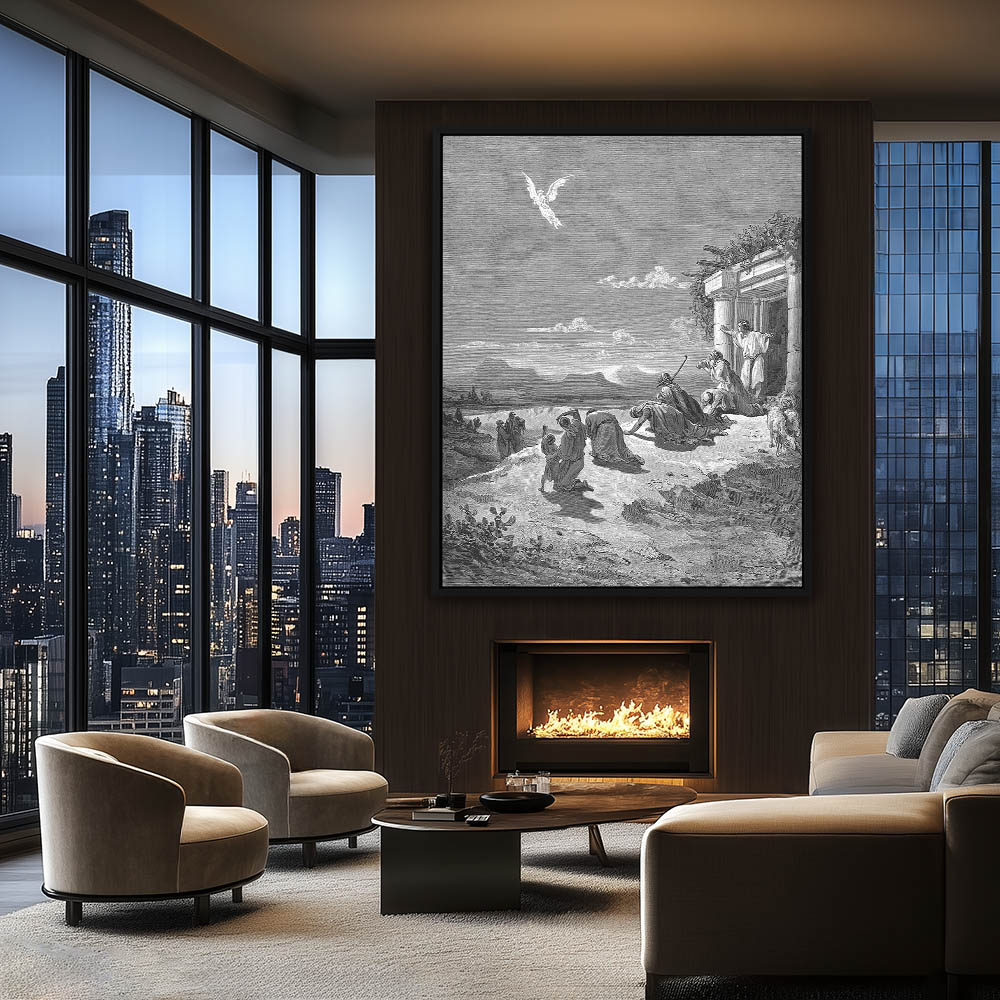 Vintage Etching of The Angel Raphael and the Family of Tobit