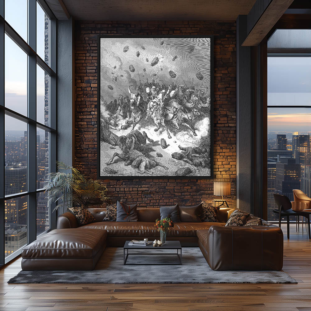 Vintage Etching of The Army of the Amorites Is Destroyed