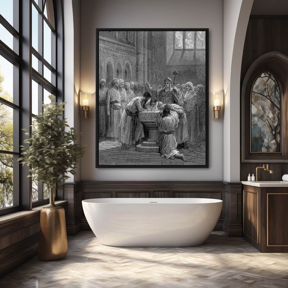 Vintage Etching of The Baptism of Infidels
