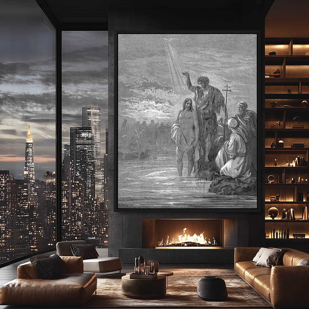 Vintage Etching of The Baptism Of Jesus