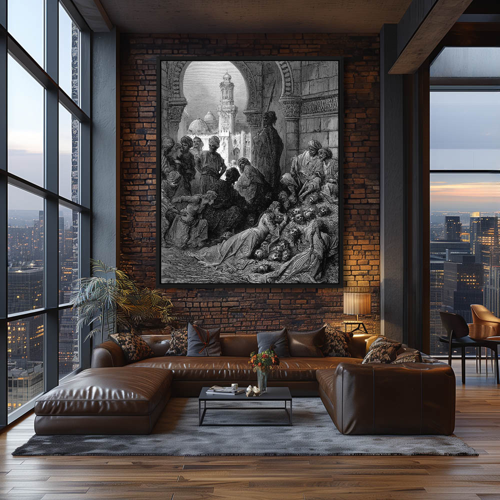 Vintage Etching of The Crusaders massacre the inhabitants of Caesarea