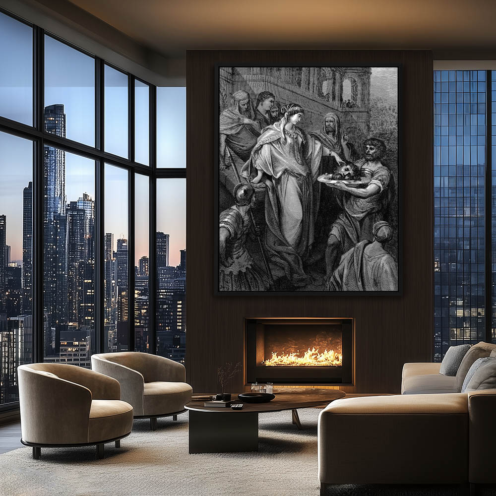 Vintage Etching of The Daughter Of Herod Head Of John The Baptist
