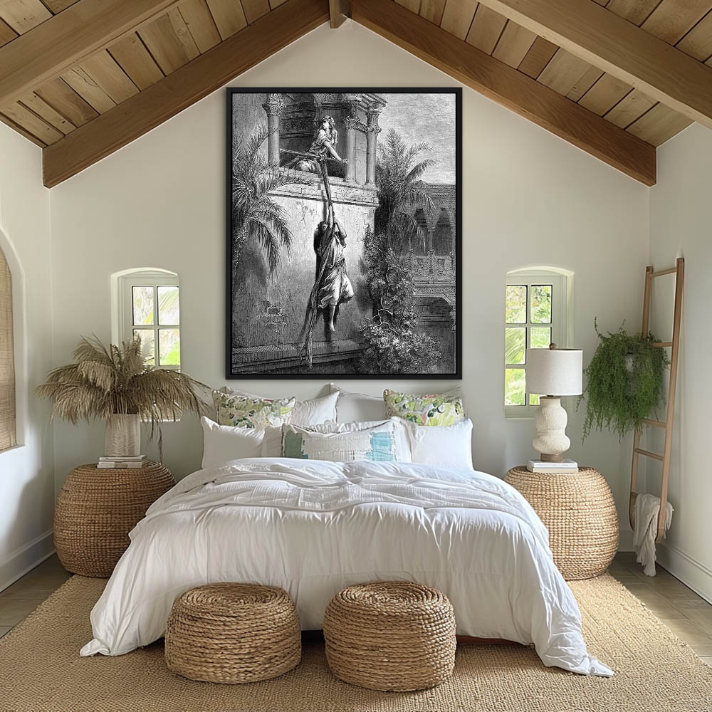 Vintage Etching of The Escape of David through the Window