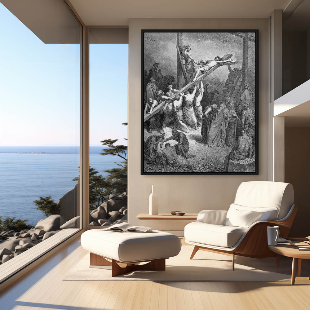 Vintage Etching of The Erection Of The Cross