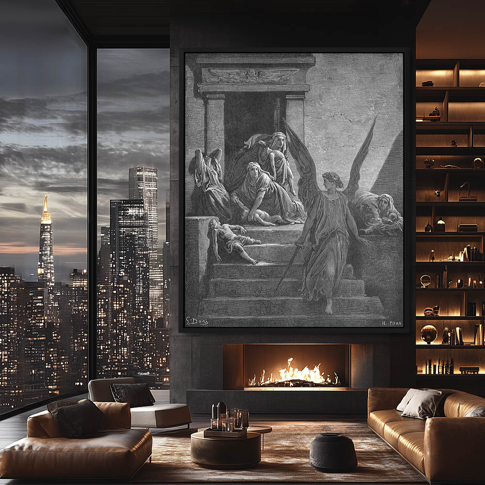 Vintage Etching of The Firstborn of the Egyptians Are Slain